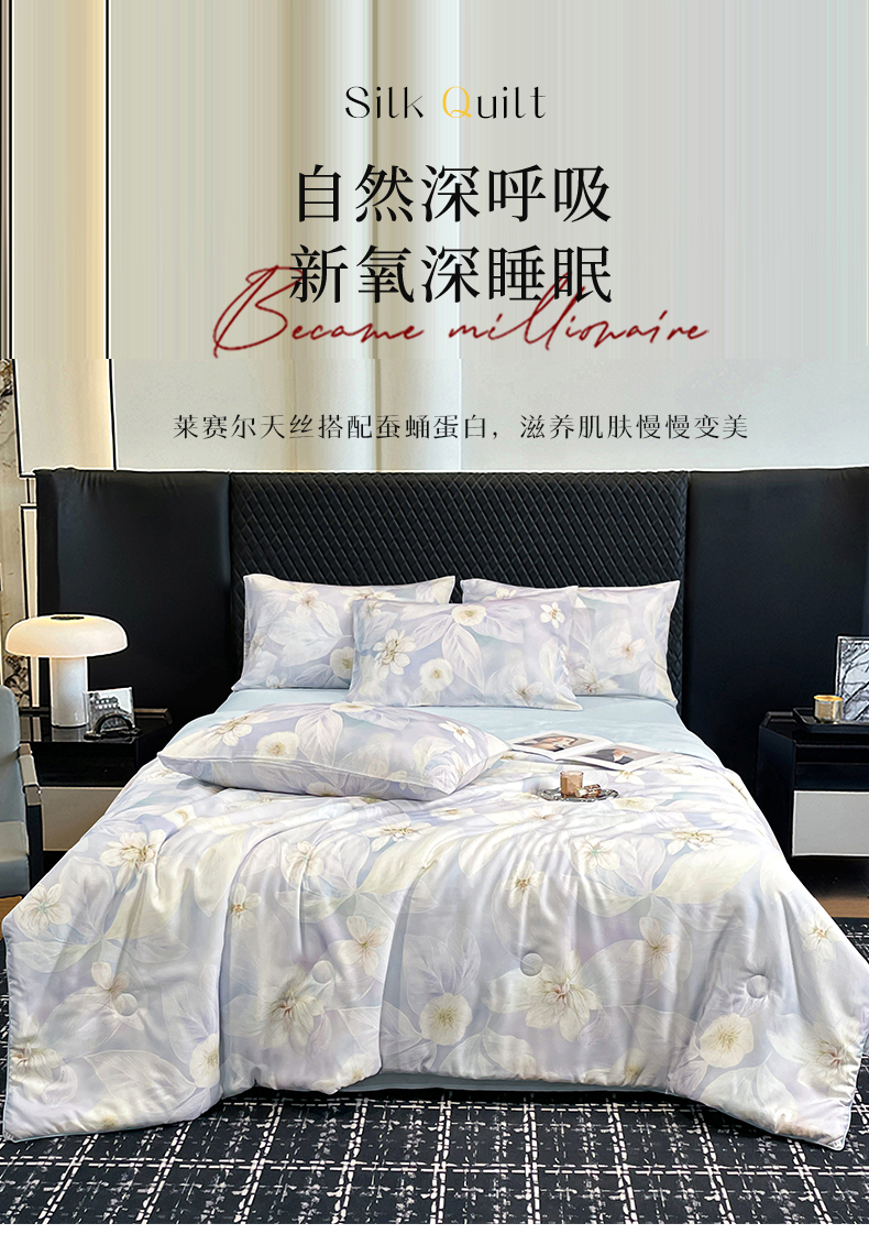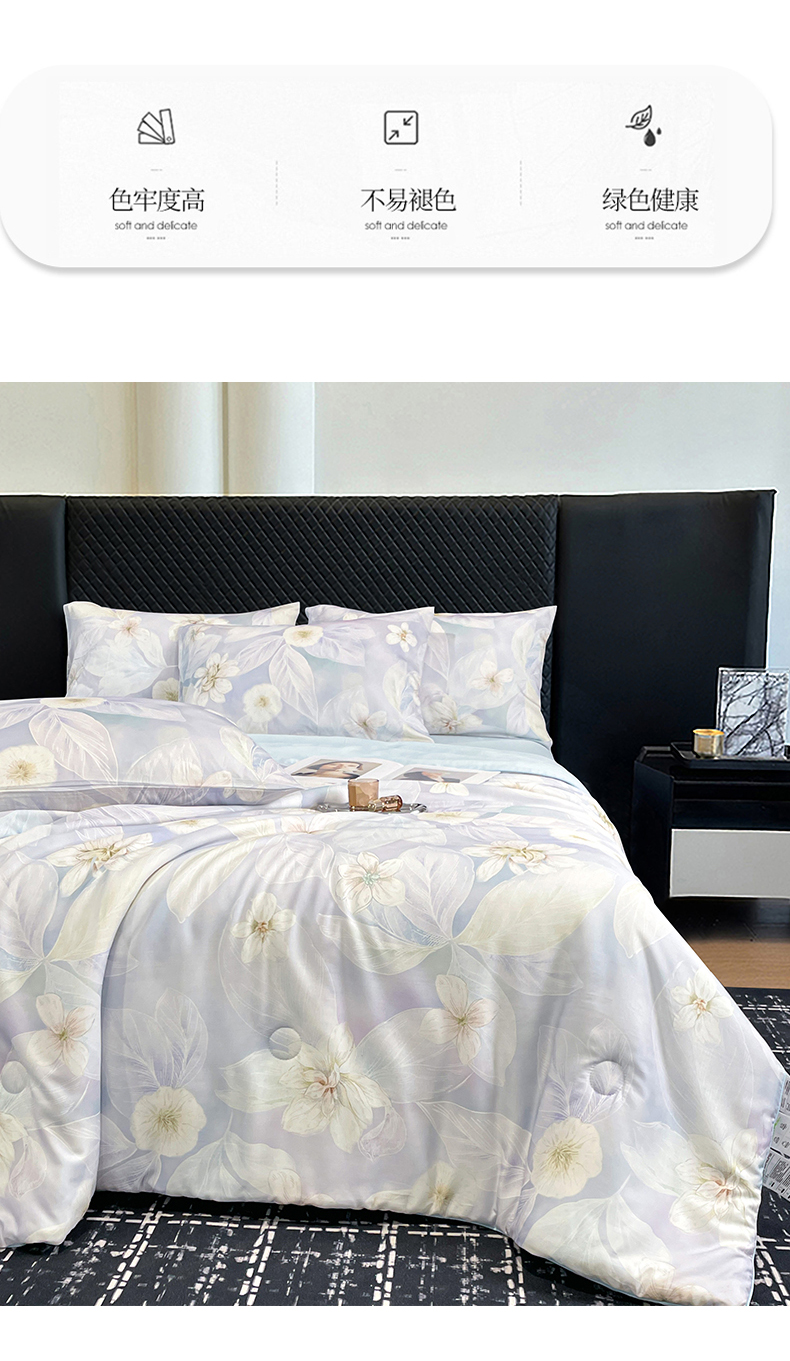 (总)尊妙被业 2026春夏新款莱赛尔天丝夏被蚕蛹蛋白夏被夏凉被空调被四件套-印花款,暗香绘-棕,花颜外-蓝,林屿间-粉,林语花夏-米,柳语素枝-绿,蔓行-绿,沐初-兰,叶间绒雪-兰,自然低语-绿