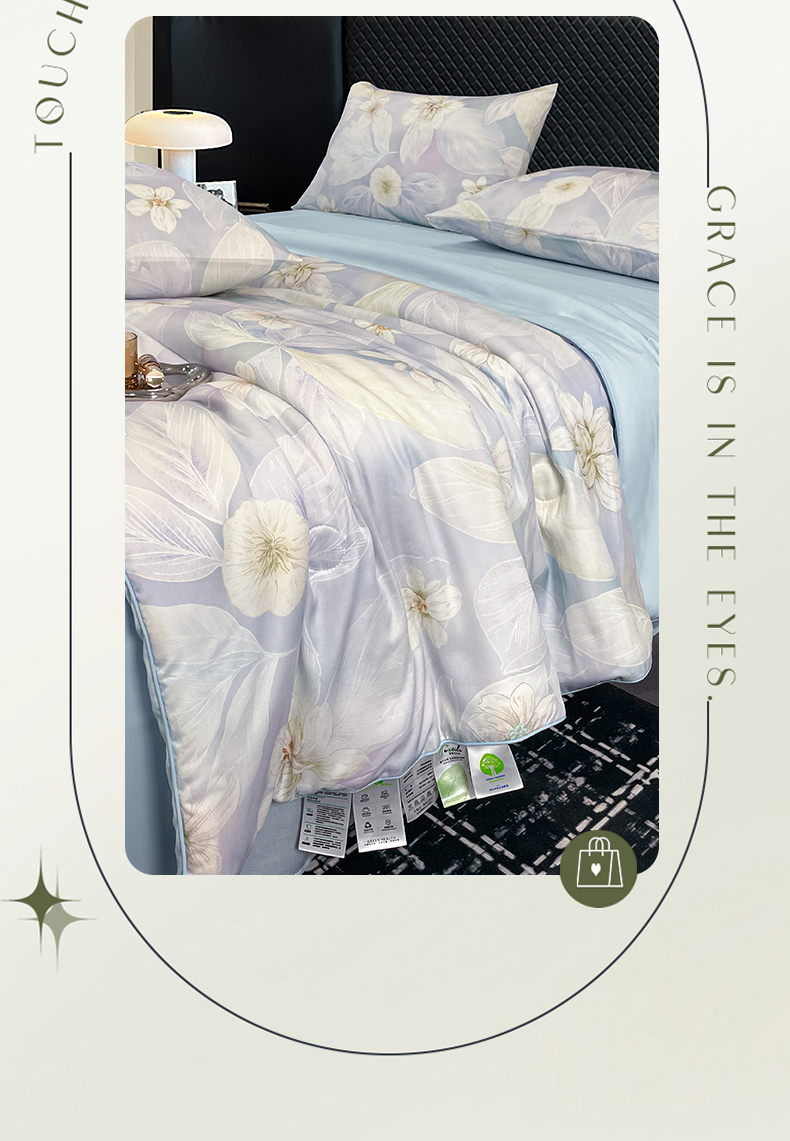 当前位置: 91家纺网 > 商品网购 > 被子 > 夏被 > 尊妙被业 2026春夏新款莱赛尔天丝夏被蚕蛹蛋白夏被夏凉被空调被四件套-印花款 叶间绒雪-兰