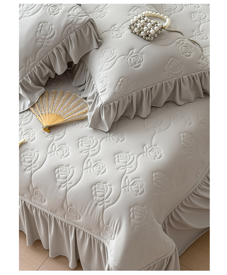 (总)雯豆家纺 【10A抗菌】2026新款氨纶凉感丝花边床裙床盖夏季冰感床罩+花边夏被四件套,氨纶花边床裙-香芋紫,氨纶花边床裙-奶黄,氨纶花边床裙-浅粉,氨纶花边床裙-浅灰,氨纶花边床裙-水蓝,组合