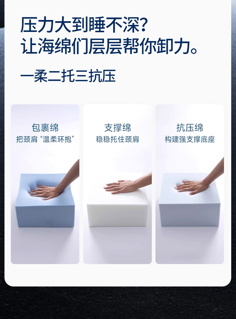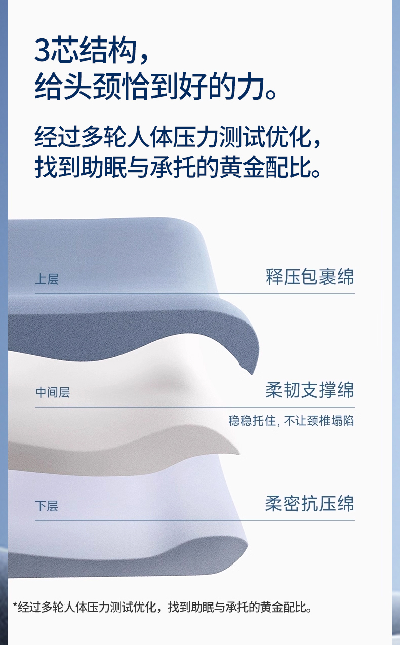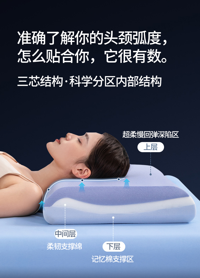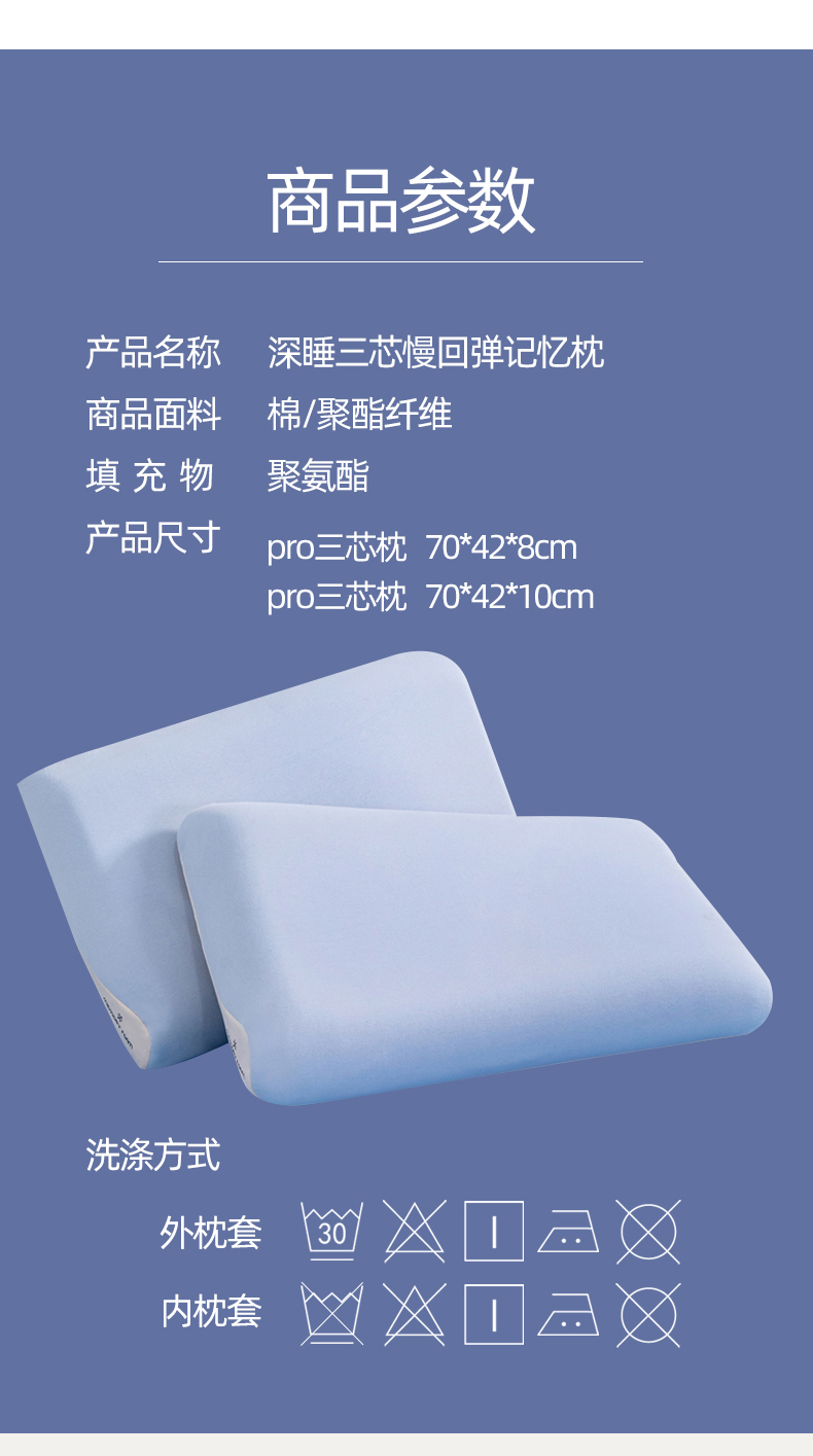 商品名称:(总)熙朵梦家纺 【某朵同款Pro深睡枕】2026新款零压力慢回弹护颈枕头 双拼记忆枕 枕芯【单芯-双芯-三芯】主图二