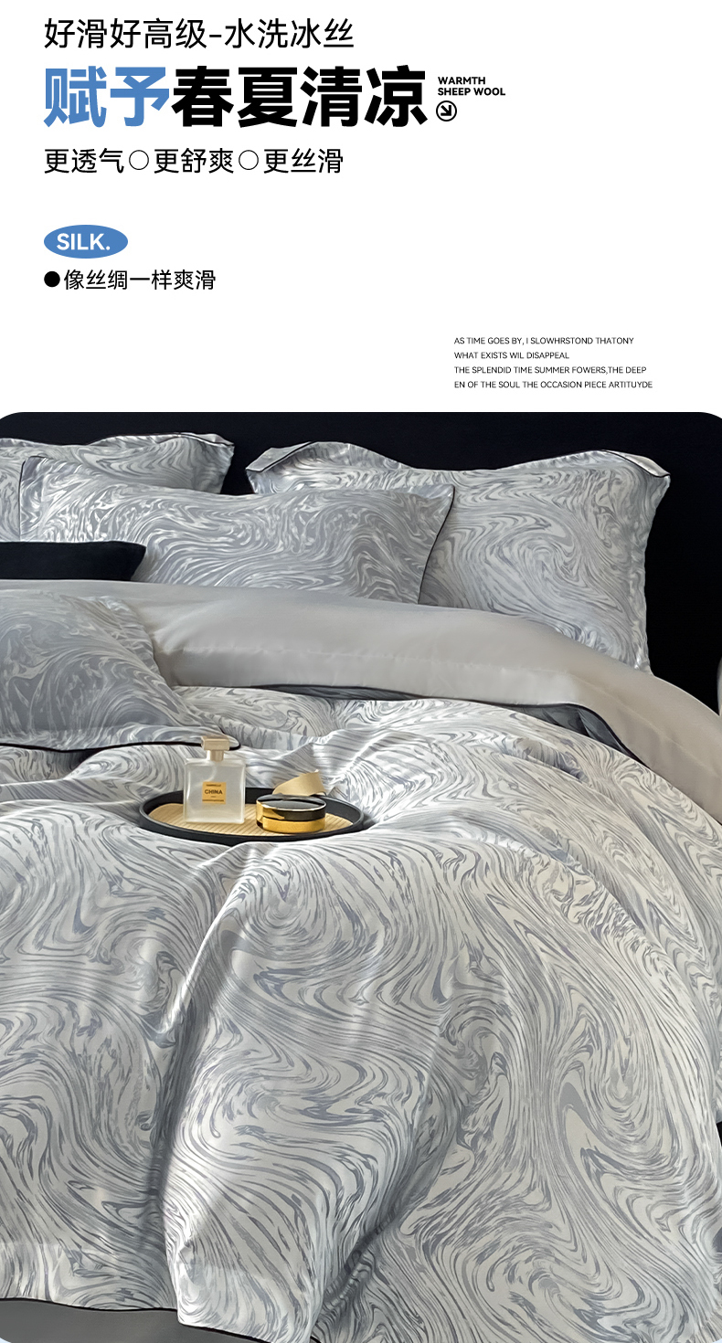 当前位置: 91家纺网 > 商品网购 > 床品套件 > 四件套 > 其它四件套 > 悦织湾家纺 2026新款水洗冰丝提花四件套-知夏凉爽透气轻奢床上用品三四件套 知夏轻奢灰