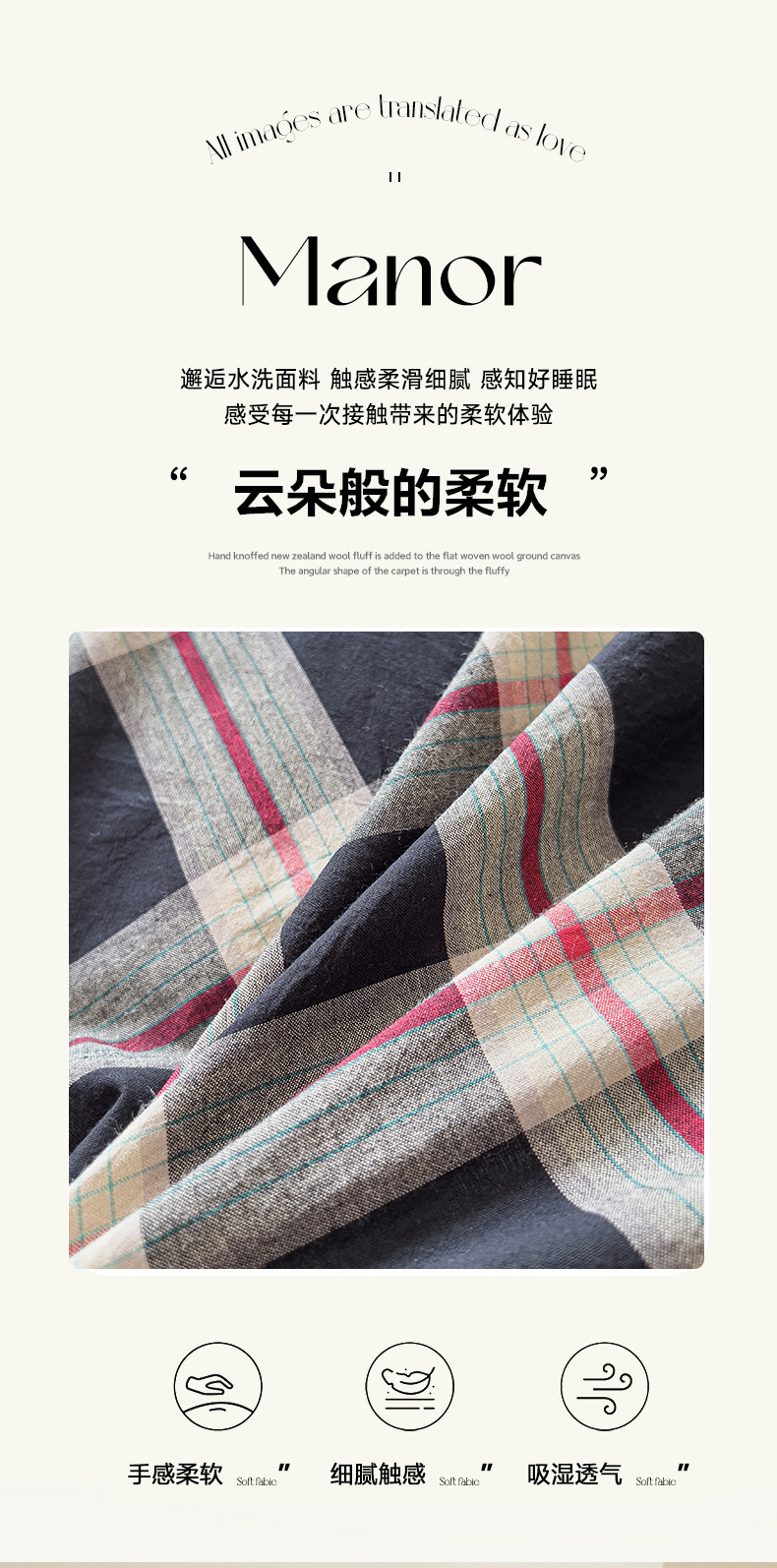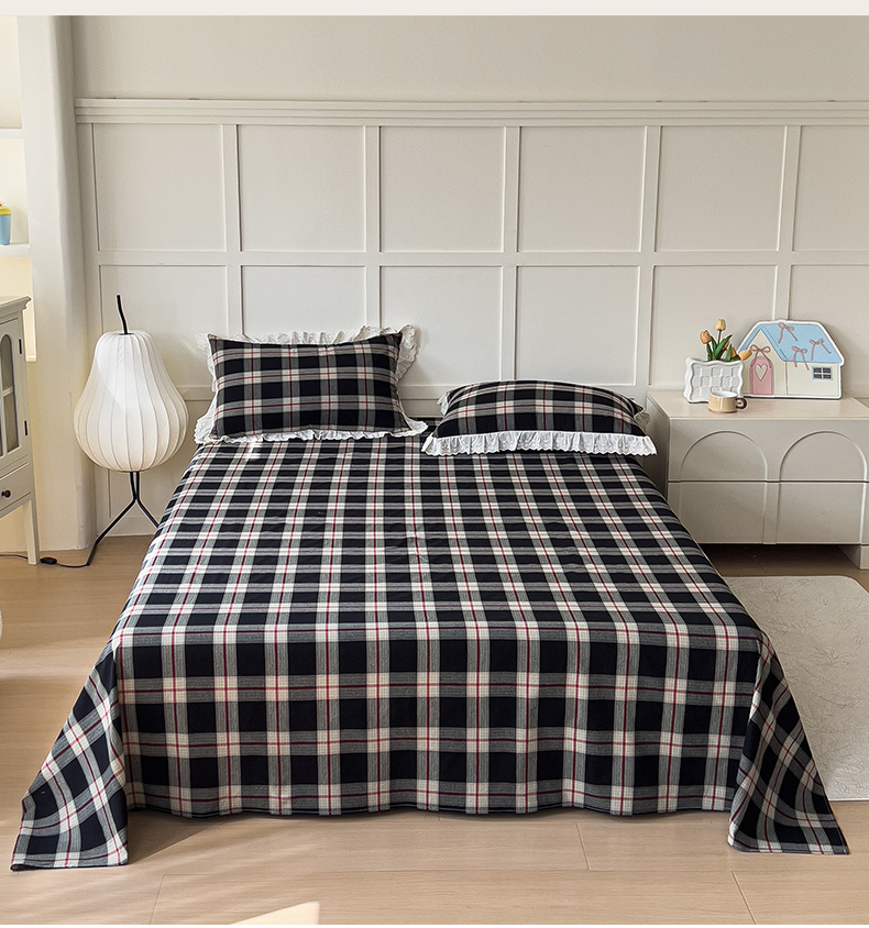 (总)花香四季家纺 2026新款全棉色织水洗棉格子系列纯棉单双人床单单件,黑巧,黑桃A,焦糖,慕斯,奶茶