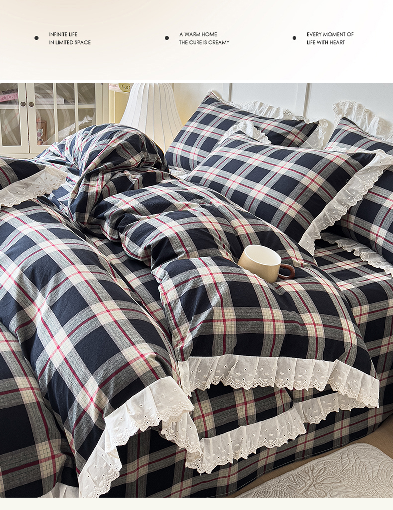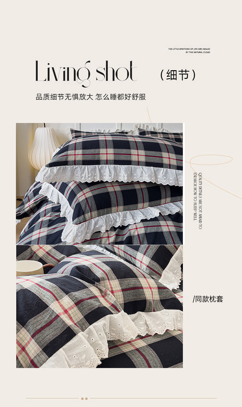 商品名称:花香四季家纺 2026全棉色织水洗棉法式公主风花边床单款床笠款四件套 云漫黑