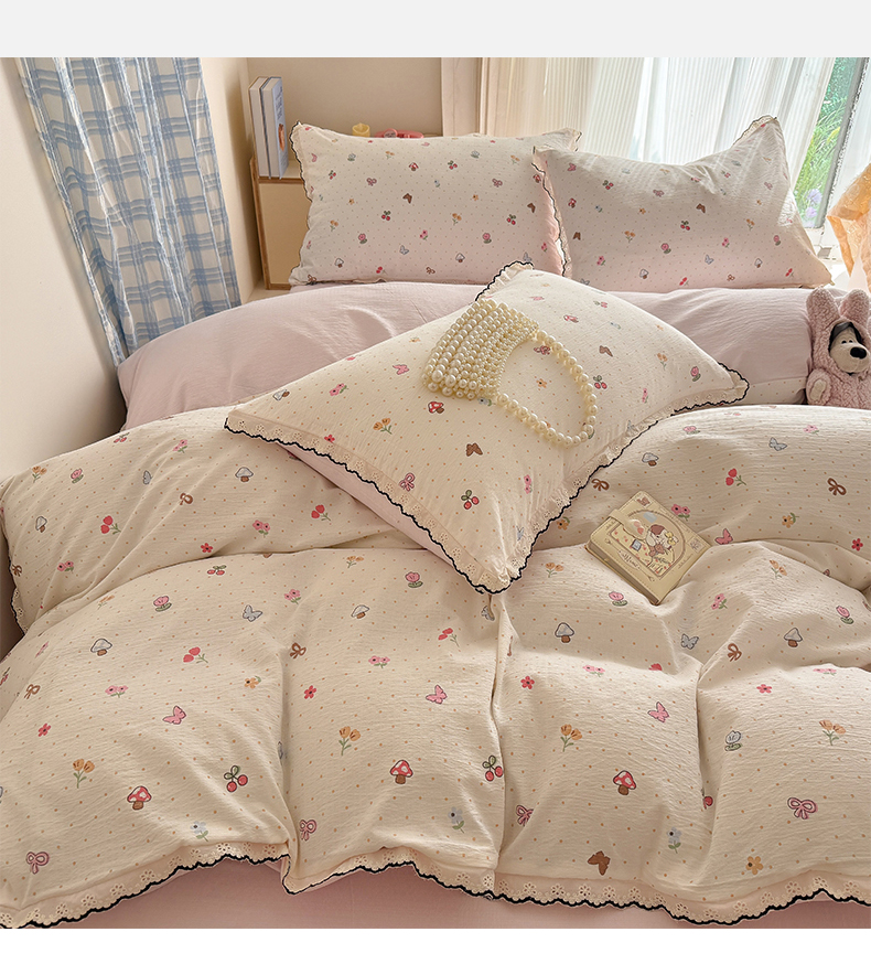 (总)温眠家纺 2026新款亲肤舒适甄选三层纱印花套件系列四件套,贩卖夏风-蓝,花丛点点猫,樱桃蝴蝶,蕾丝熊,葡萄腊肠狗,糖豆腊肠狗,星月天空,樱桃物语,雨爱,圆舞曲,芭乐米菲,彩波波,彩虹世界,动物团团,莓果结,梅森粉,莫奈-咖,沐风,秋月梨,小狗集合会,小黑豆,小花点点,幸运星,南瓜派,复古修狗,碱水结,蓝莓小猫,玫瑰夜-绿