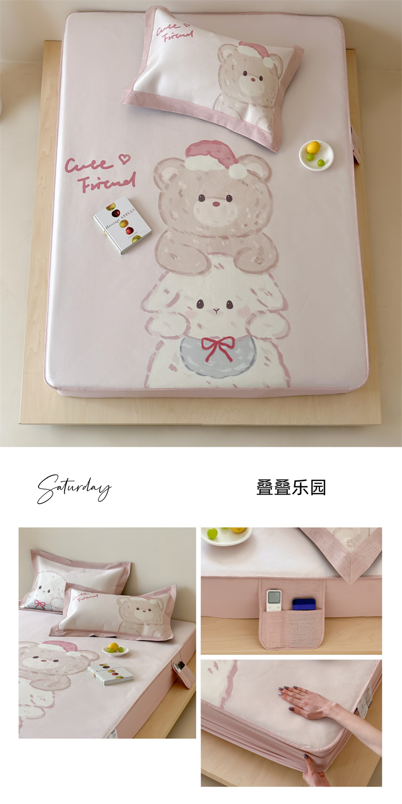 (总)橘滋 2025夏日新款高端A类原创设计婴儿童趣卡通数码印花冰丝席凉席-床席床笠,大眼熊仔,叠叠乐园,蝴蝶结兔兔,欢乐曲奇,木马小熊,太空冒险,熊猫胖达
