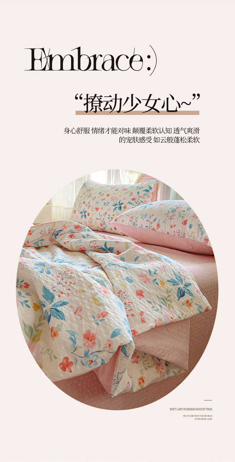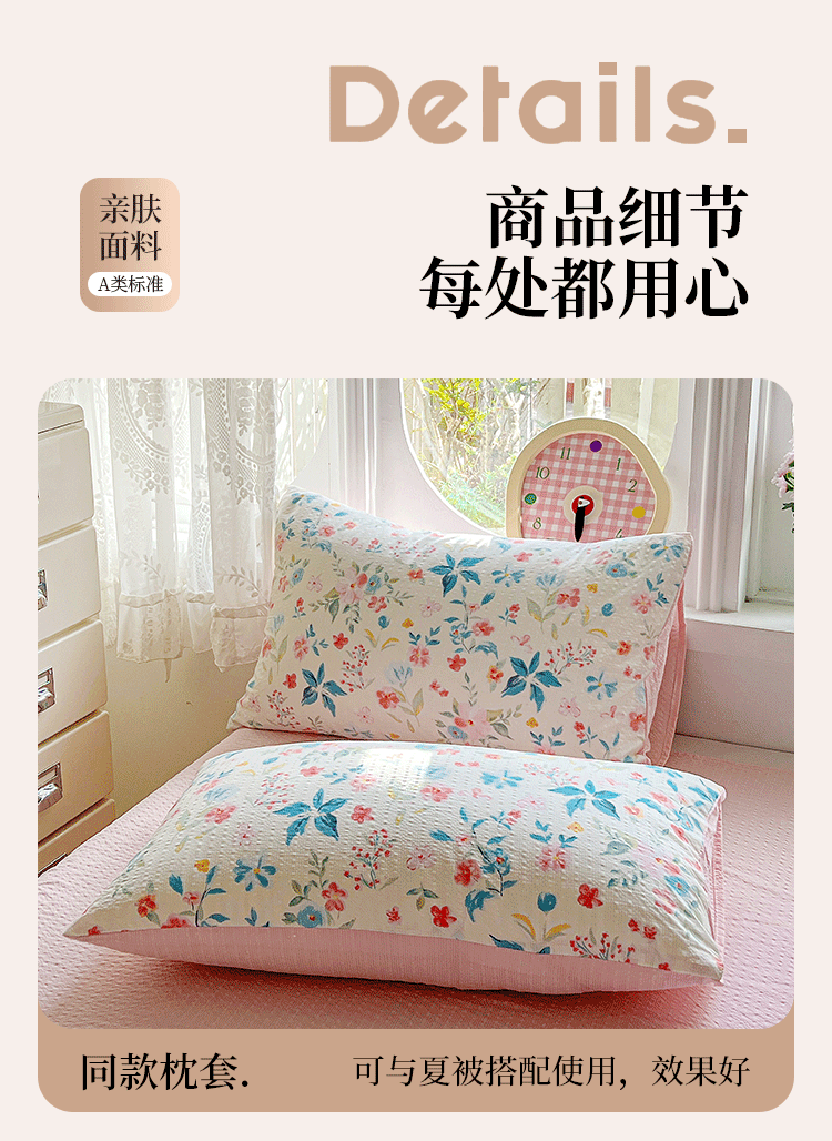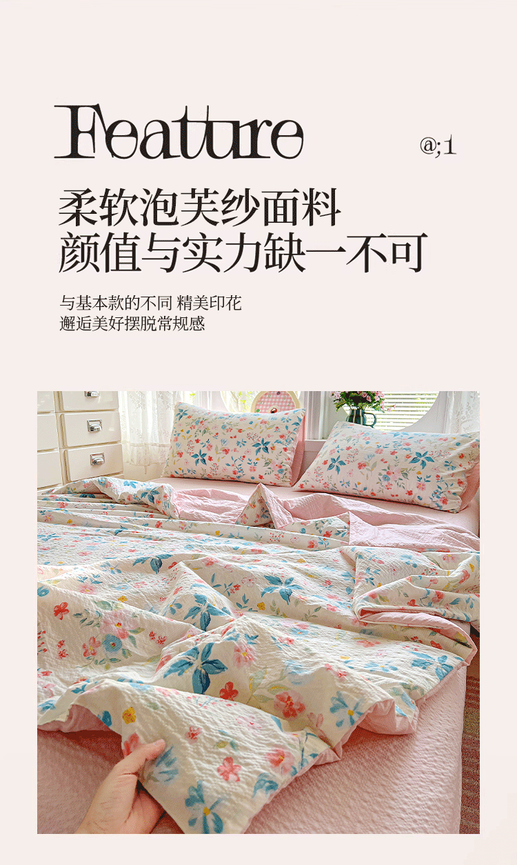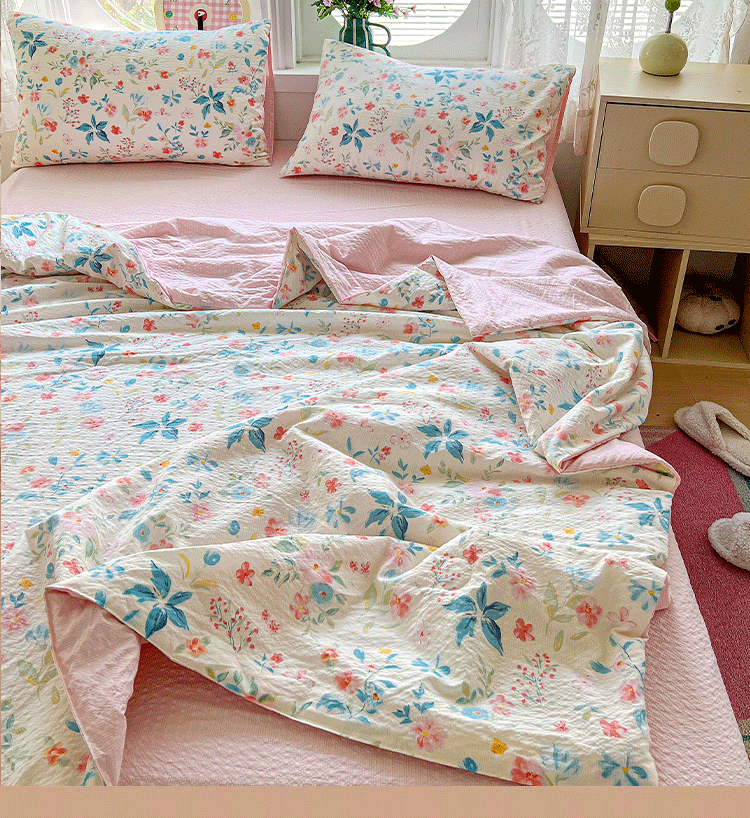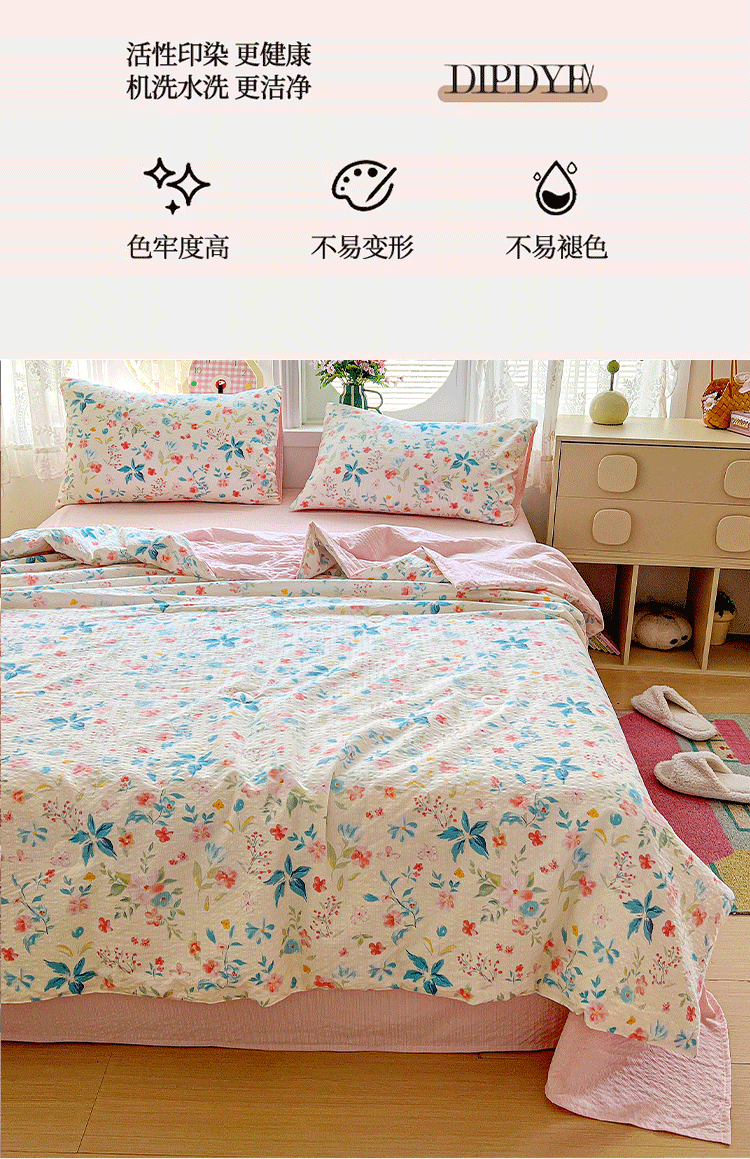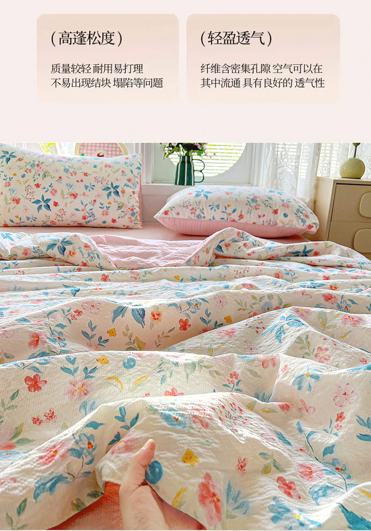 商品名称:小桃姐家纺 2026新款泡芙棉双层纱夏被空调被四件套小清新泡泡纱夏被卡通夏凉被空调被 安娜