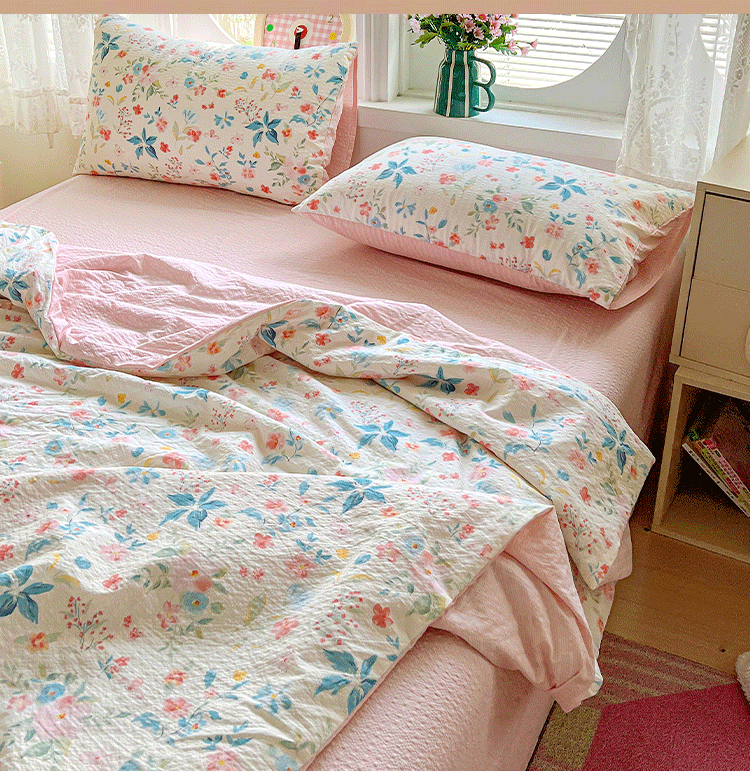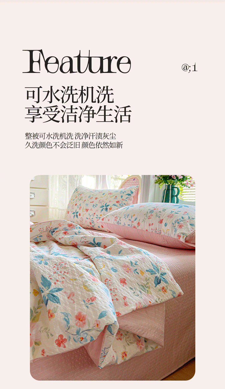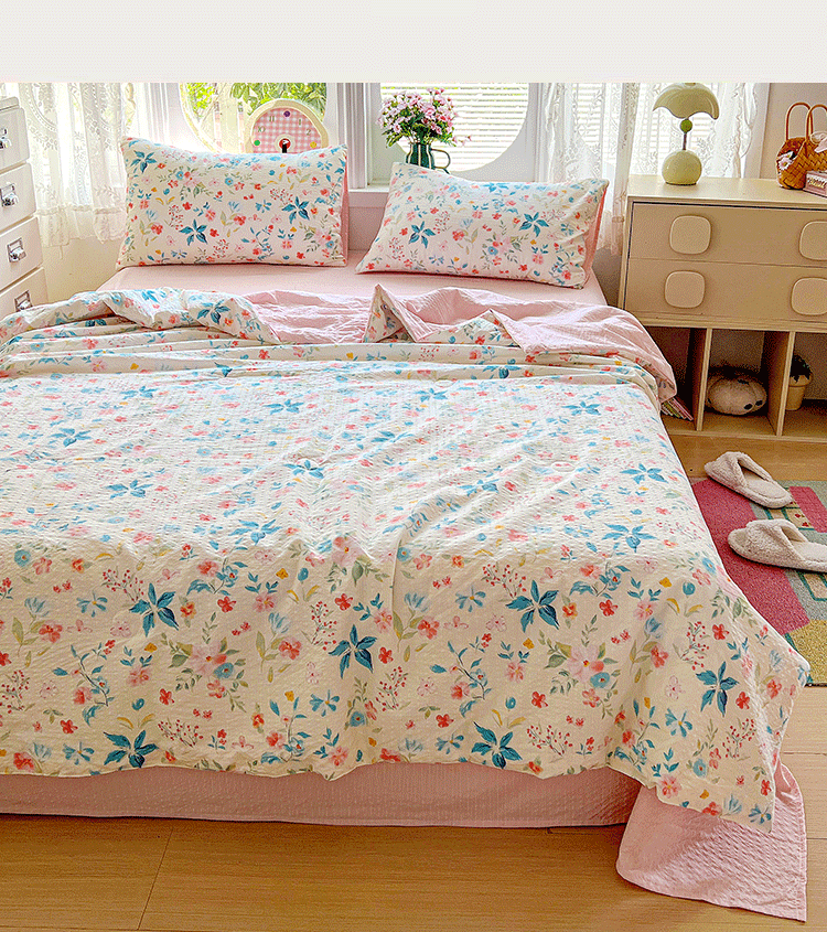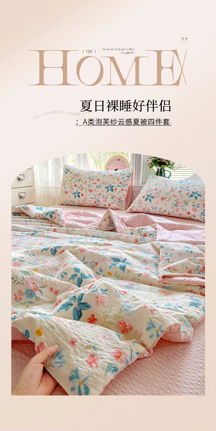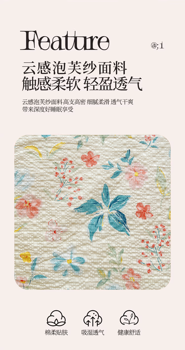 商品名称:小桃姐家纺 2026新款泡芙棉双层纱夏被空调被四件套小清新泡泡纱夏被卡通夏凉被空调被 安娜
