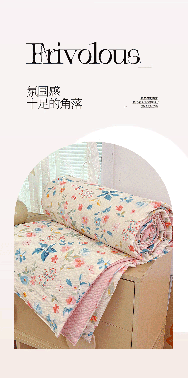小桃姐家纺 2026新款泡芙棉双层纱夏被空调被四件套小清新泡泡纱夏被卡通夏凉被空调被 安娜