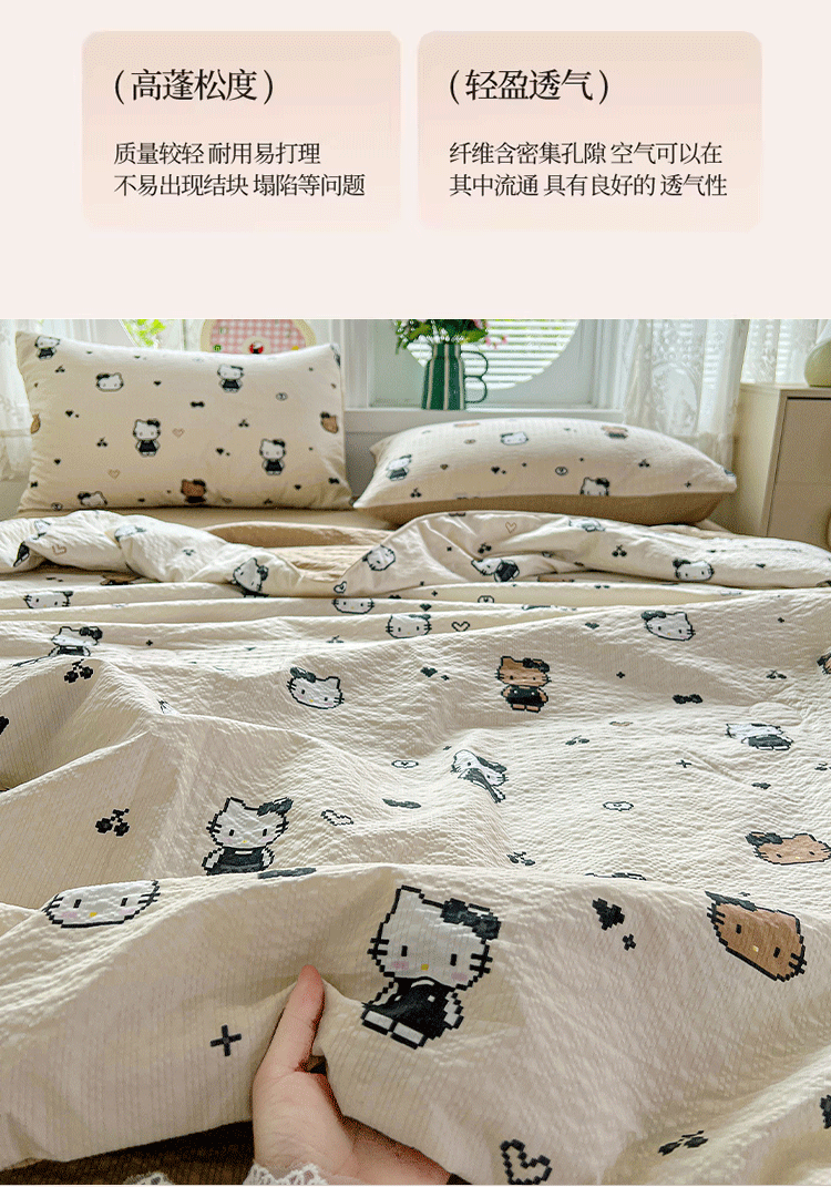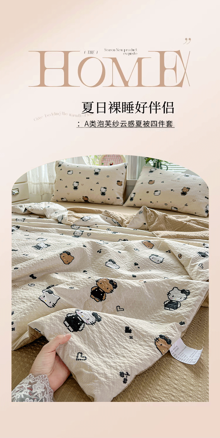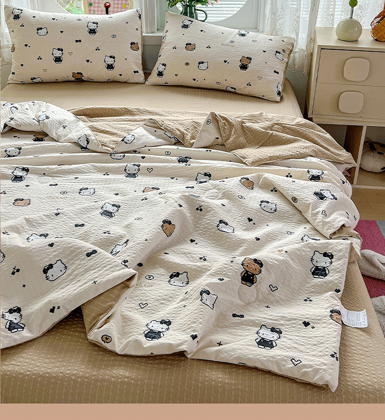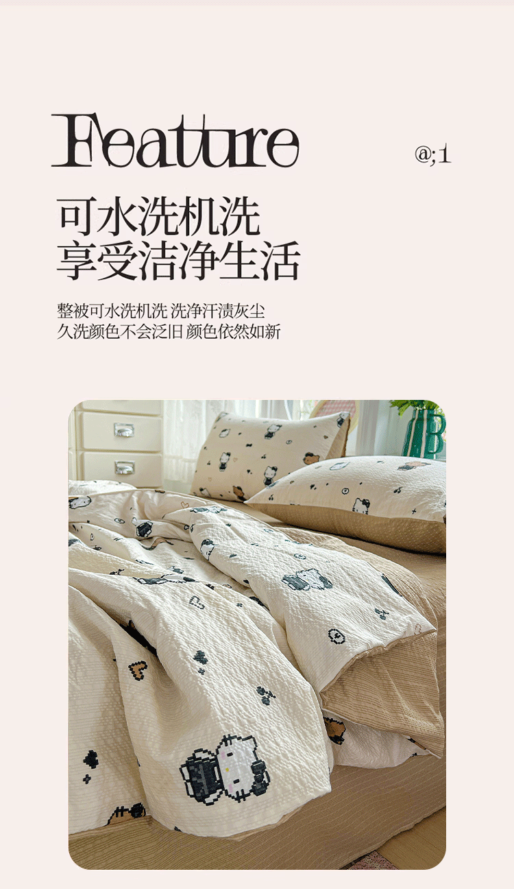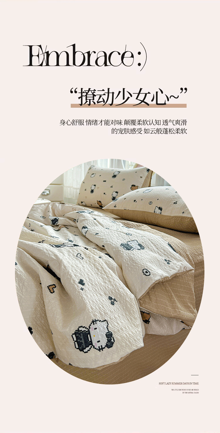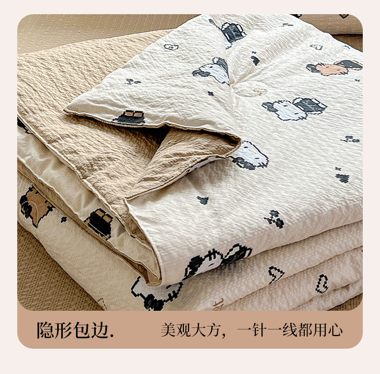 商品名称:小桃姐家纺 2026新款泡芙棉双层纱夏被空调被四件套小清新泡泡纱夏被卡通夏凉被空调被 拼豆喵