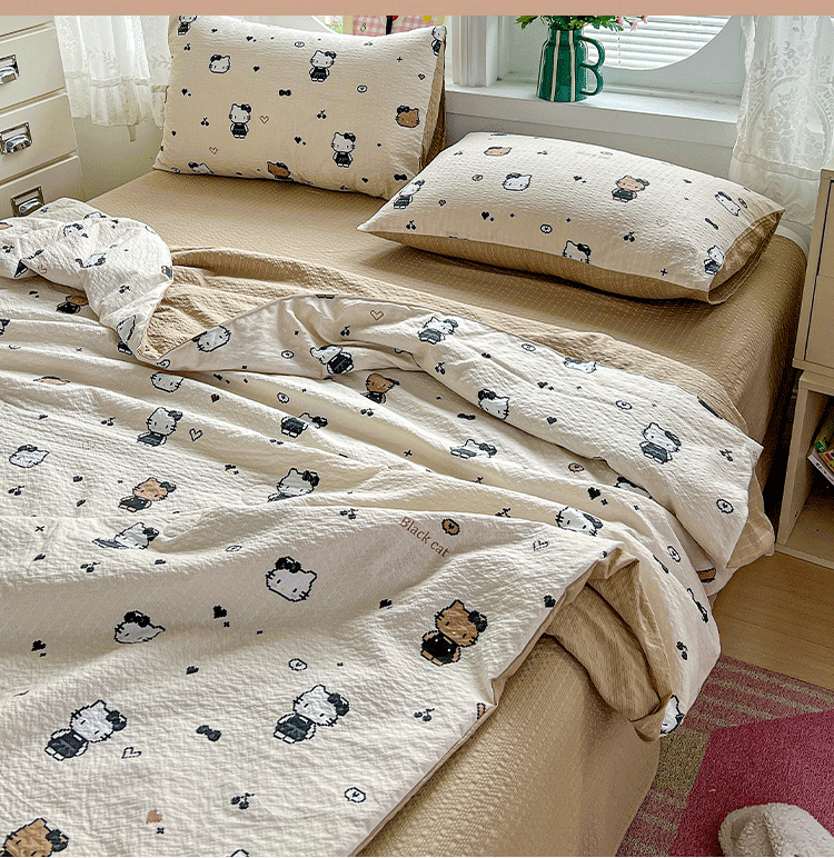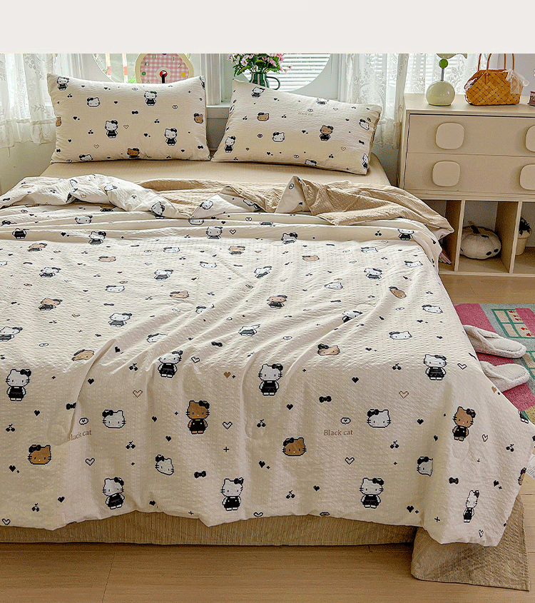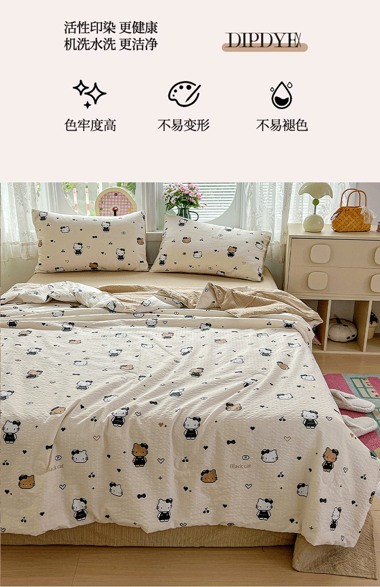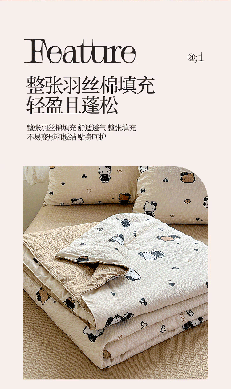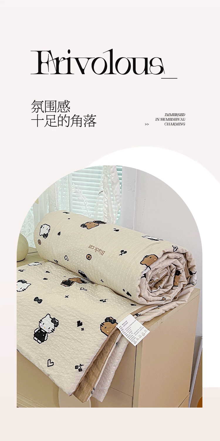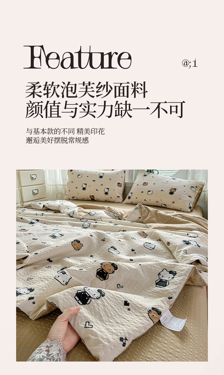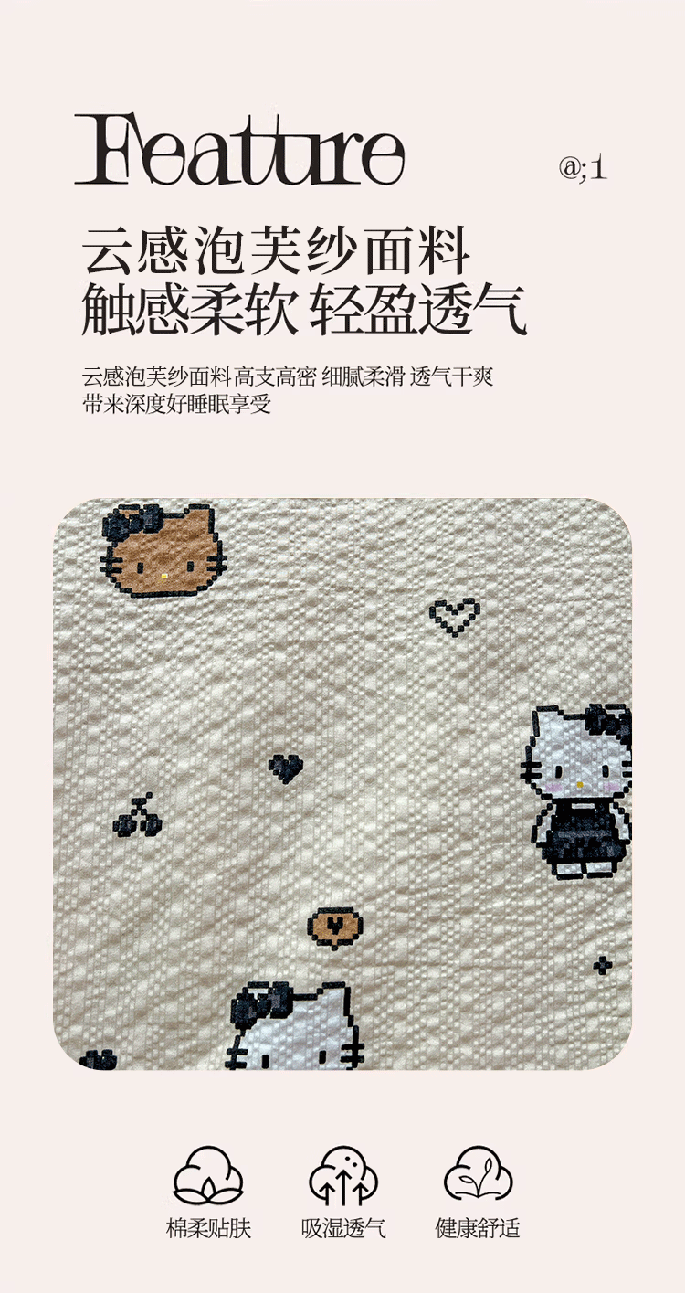 商品名称:小桃姐家纺 2026新款泡芙棉双层纱夏被空调被四件套小清新泡泡纱夏被卡通夏凉被空调被 拼豆喵