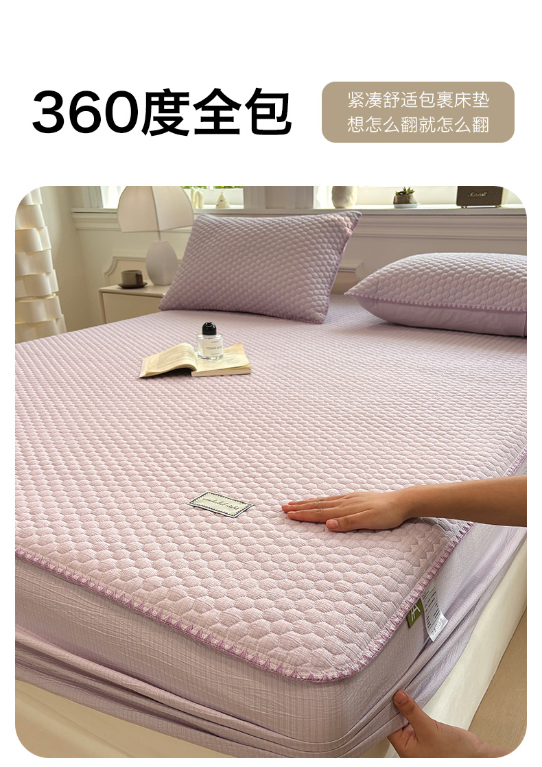 (总)居眠 2025新款防水夹棉床笠-清雅,清雅-粉色,清雅-灰色,清雅-卡其,清雅-绿色,清雅-米白,清雅-深蓝