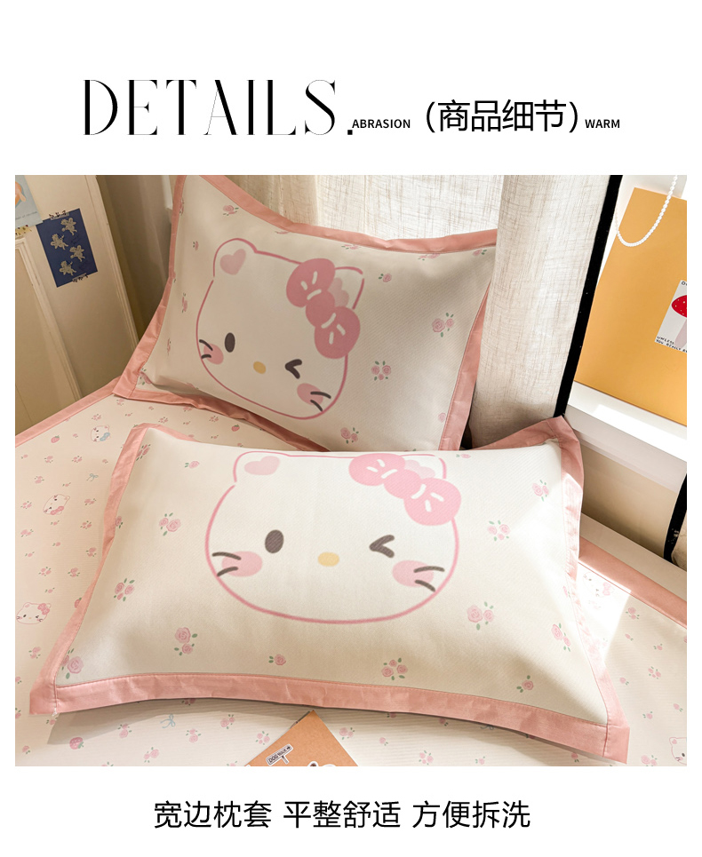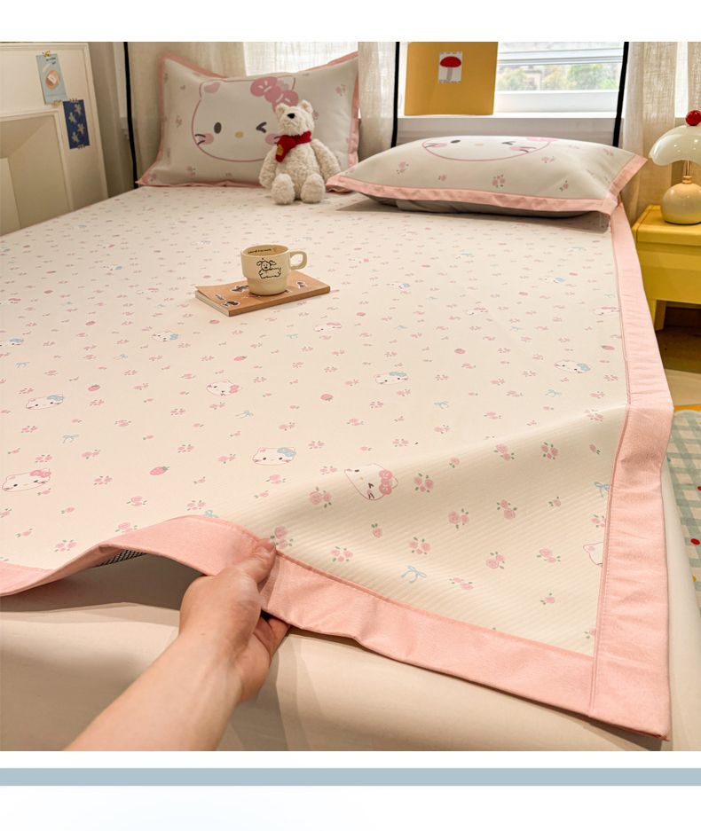 慕尚家纺 2026春夏新款可水洗斜纹凉豆豆印花凉感席凉席席子 草莓凯蒂