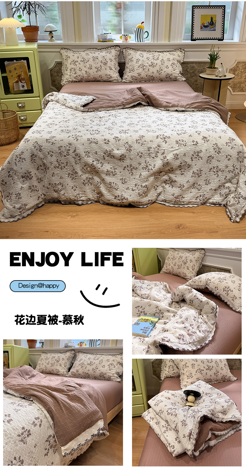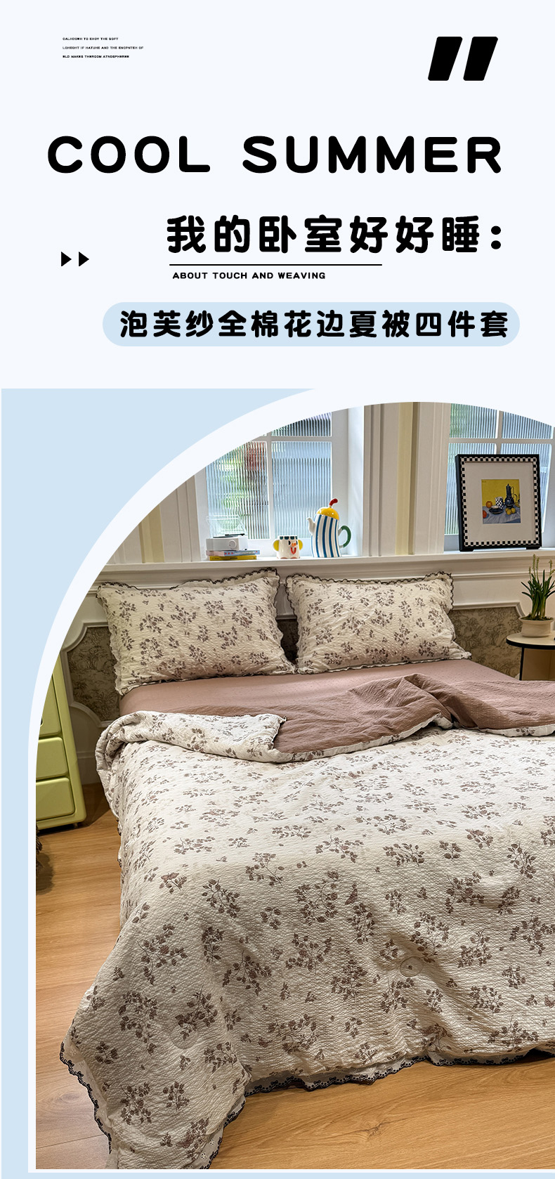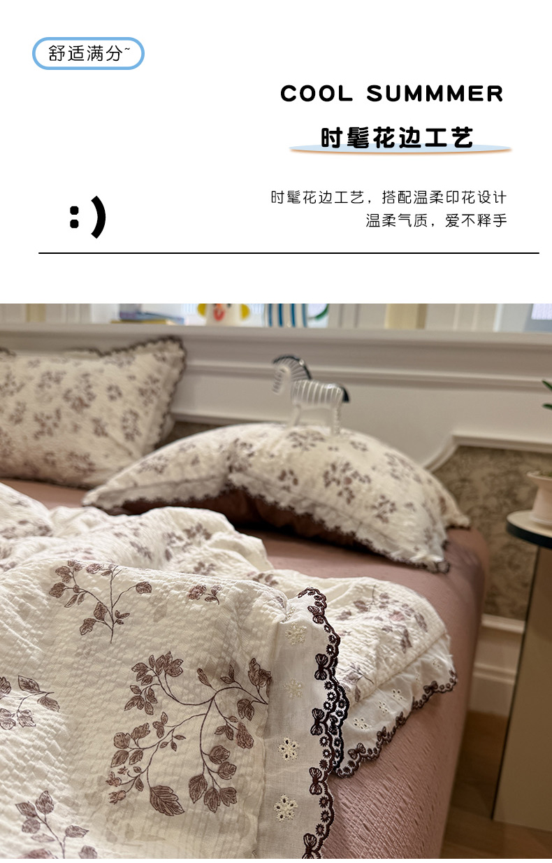 水墨江南 2026新款泡芙纱全棉花边夏被四件套 花边夏被-慕秋