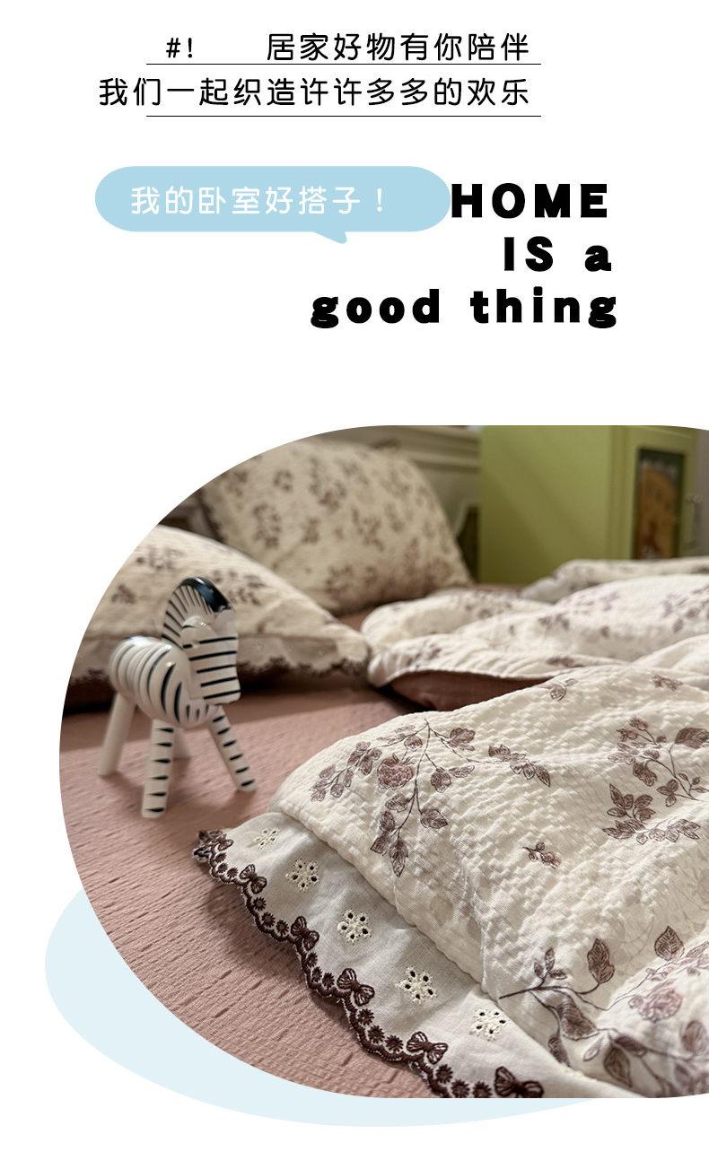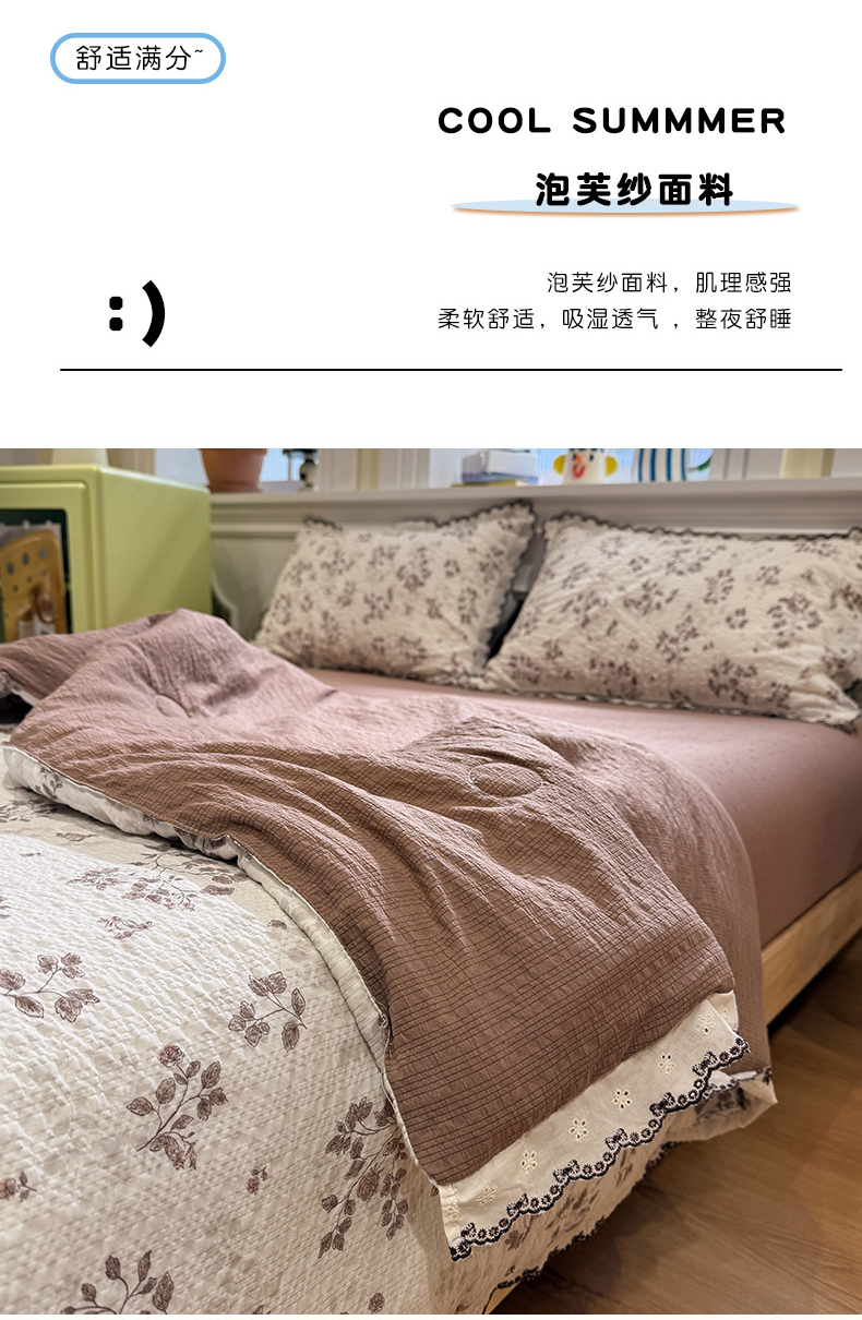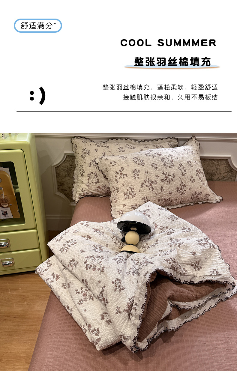 水墨江南 2026新款泡芙纱全棉花边夏被四件套 花边夏被-慕秋
