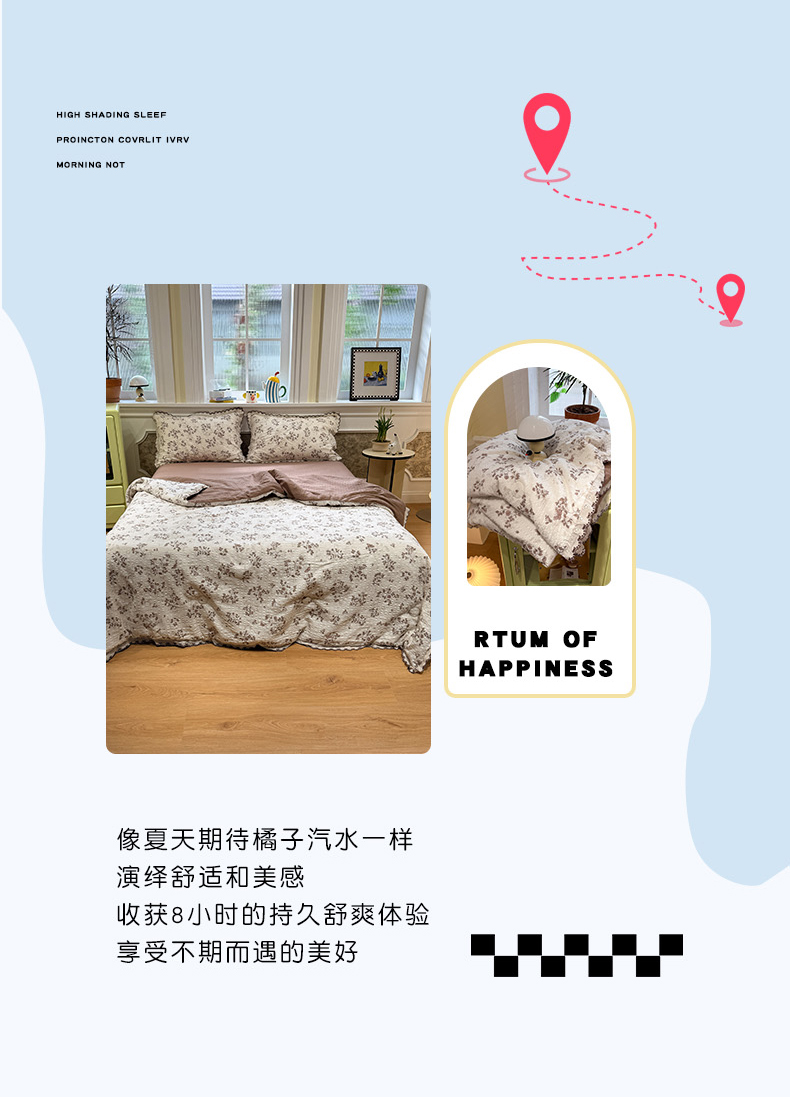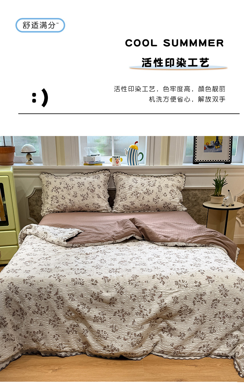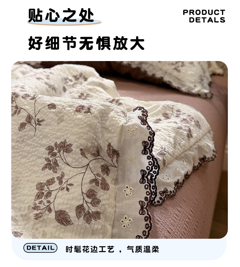 商品名称:水墨江南 2026新款泡芙纱全棉花边夏被四件套 花边夏被-慕秋