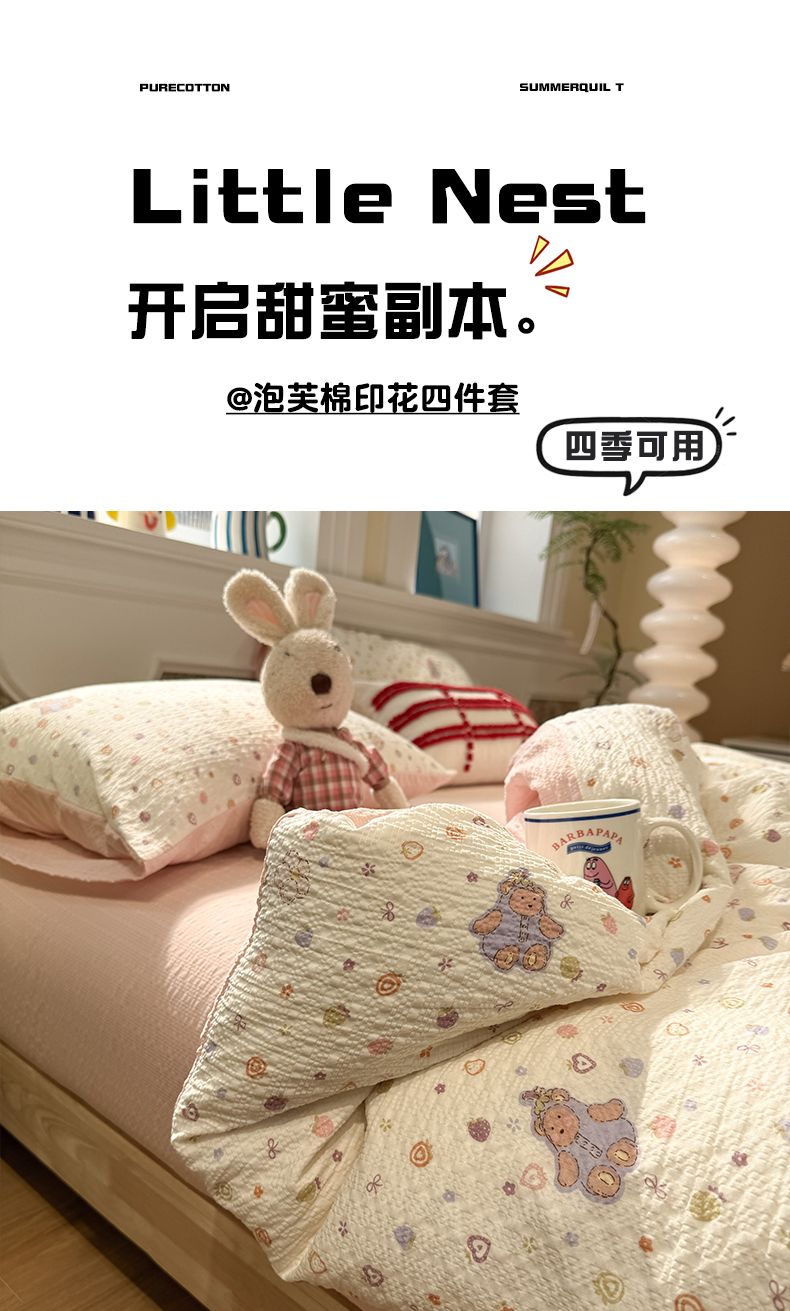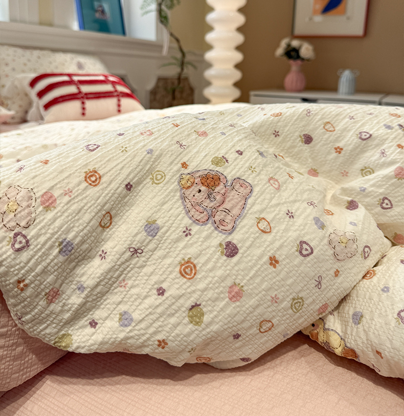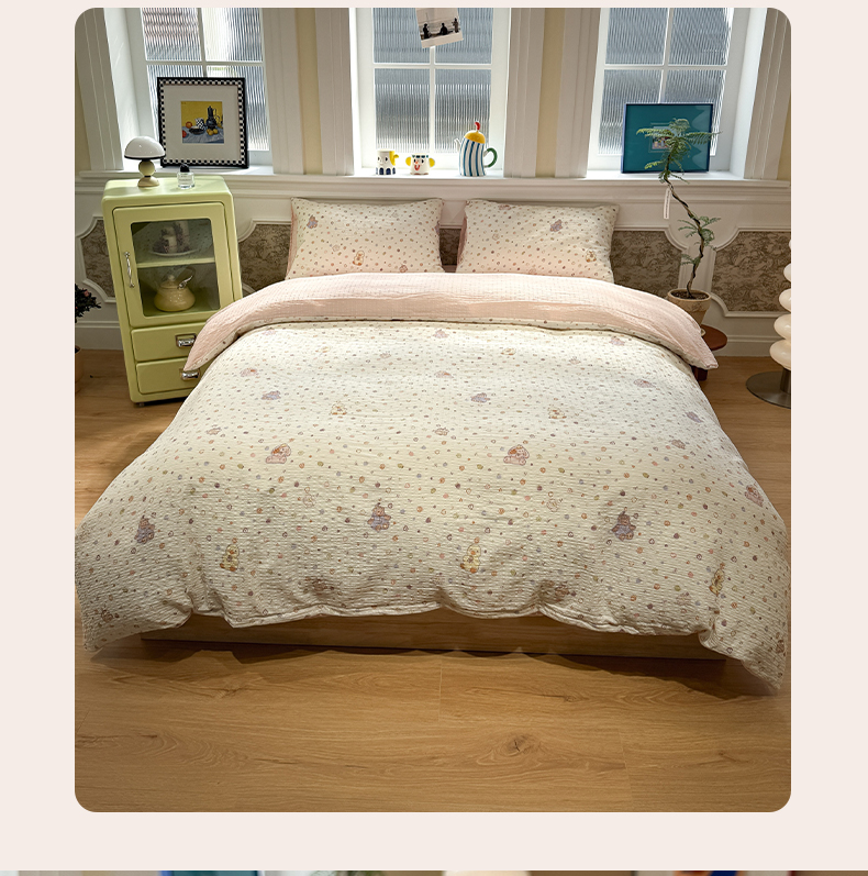 当前位置: 91家纺网 > 商品网购 > 床品套件 > 四件套 > 化纤普通四件套 > 水墨江南 2026直播热款泡芙棉双层纱四件套 甜心伙伴