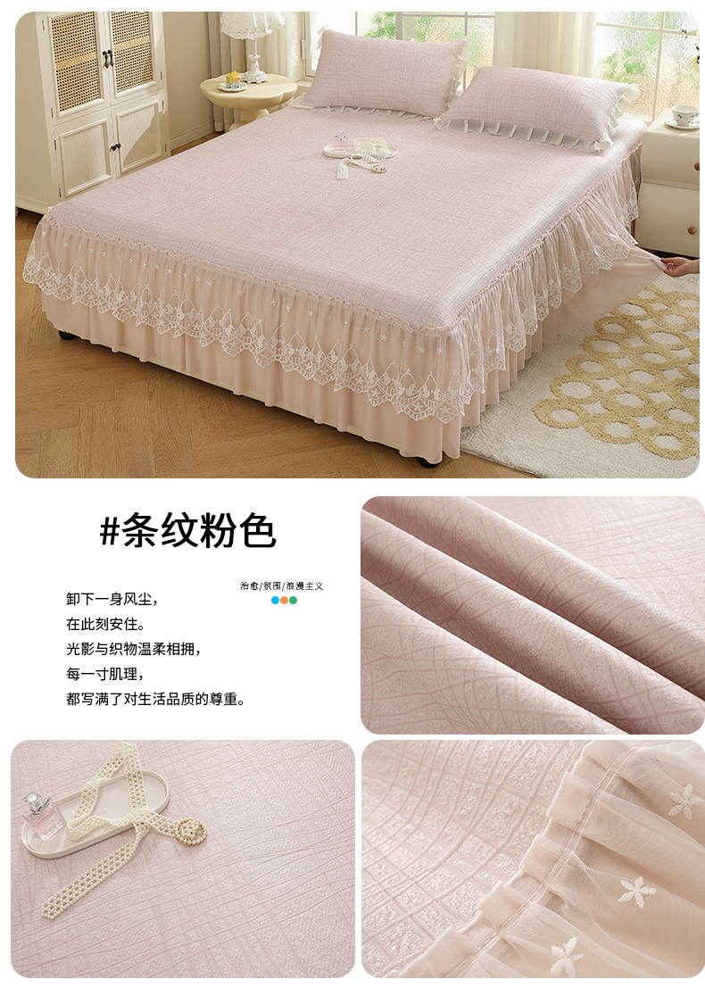 共鸣沙发垫 2026新款冰豆豆条纹床裙系列 冰豆条纹粉色