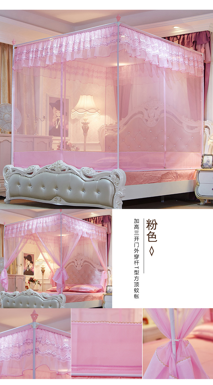 海虹蚊帐 8812款外穿杆蚊帐坐床蚊帐全底蚊帐 粉红色