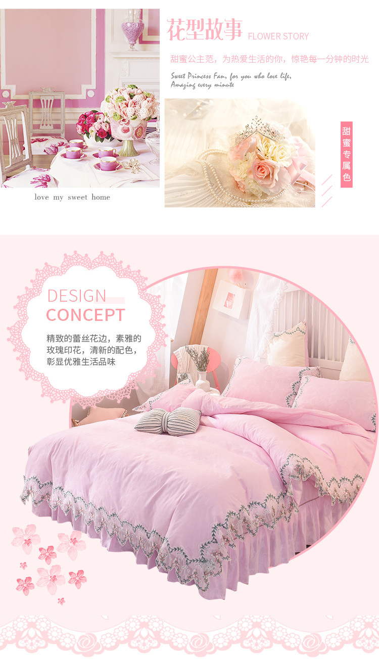 绒世界 2021新品玫瑰秘密系列四件套床裙款玫瑰秘密-粉