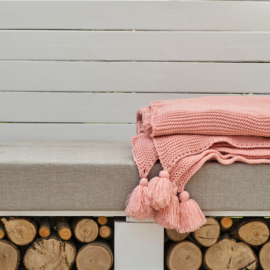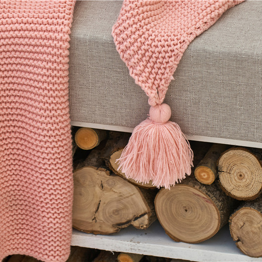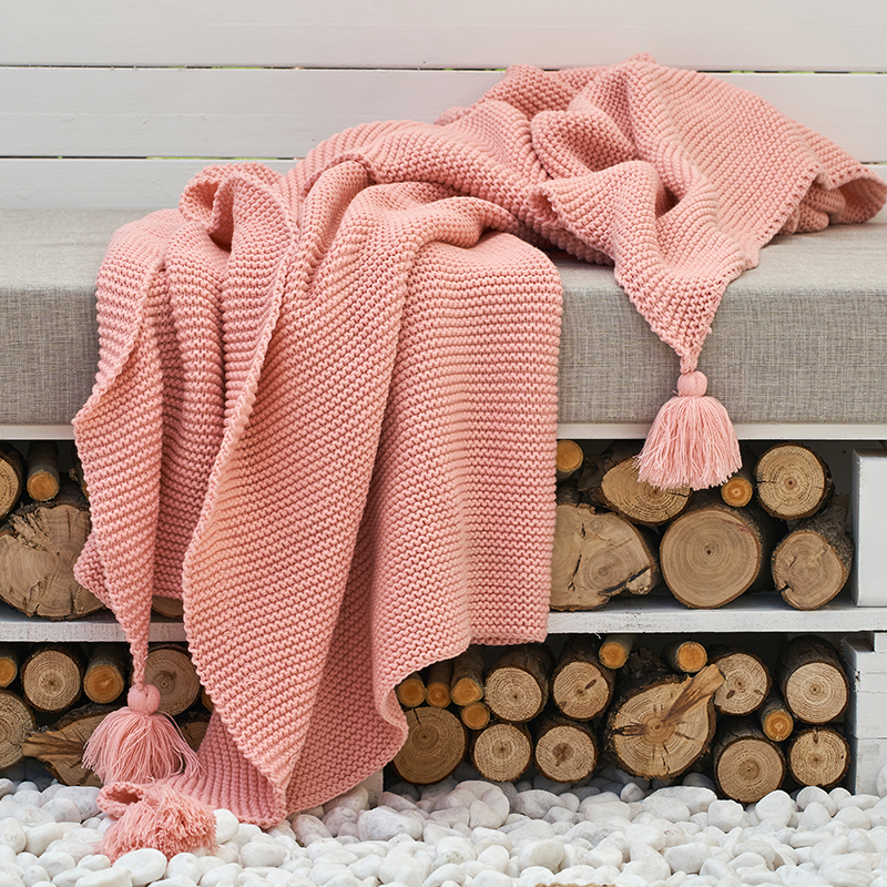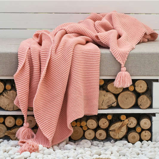 暖绵绵家纺新款贝卡姆软装线毯针织毯子线毯 橘粉