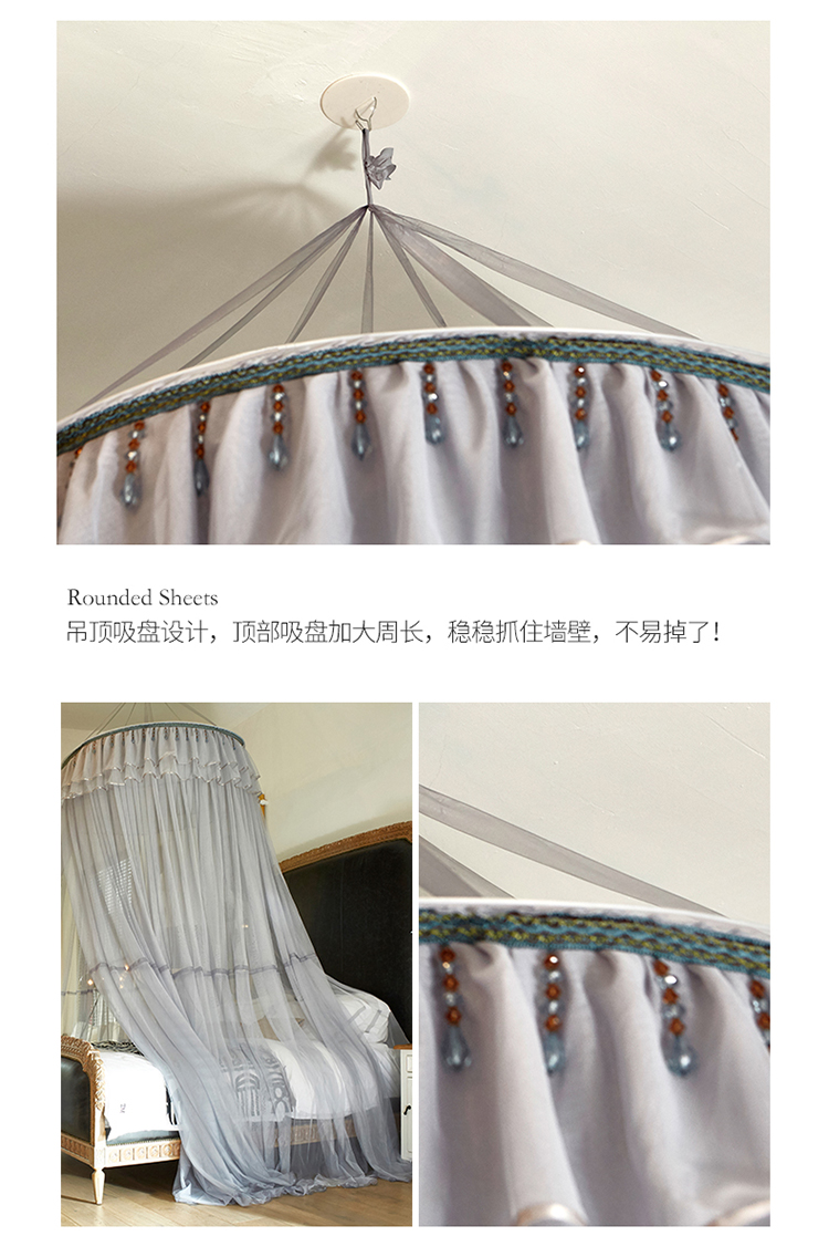 新太阳 2022新款D01吊珠款蚊帐顶部直径1.2m 银灰