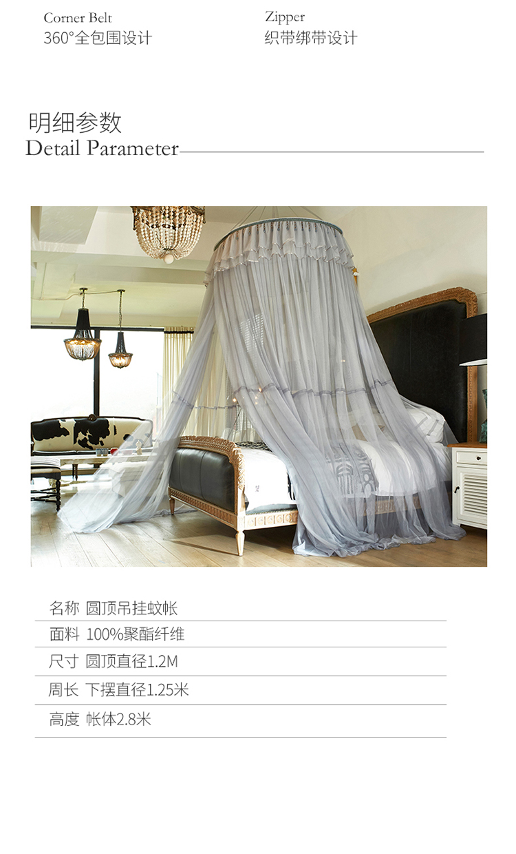 商品名称:新太阳 2022新款D01吊珠款蚊帐顶部直径1.2m 银灰