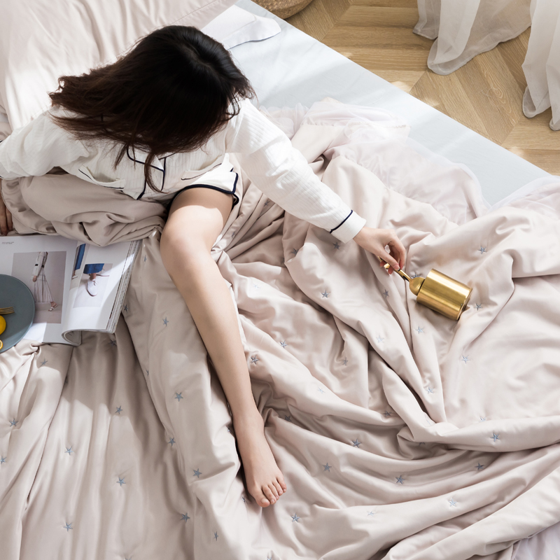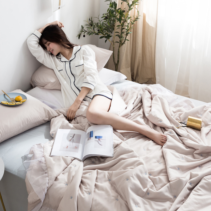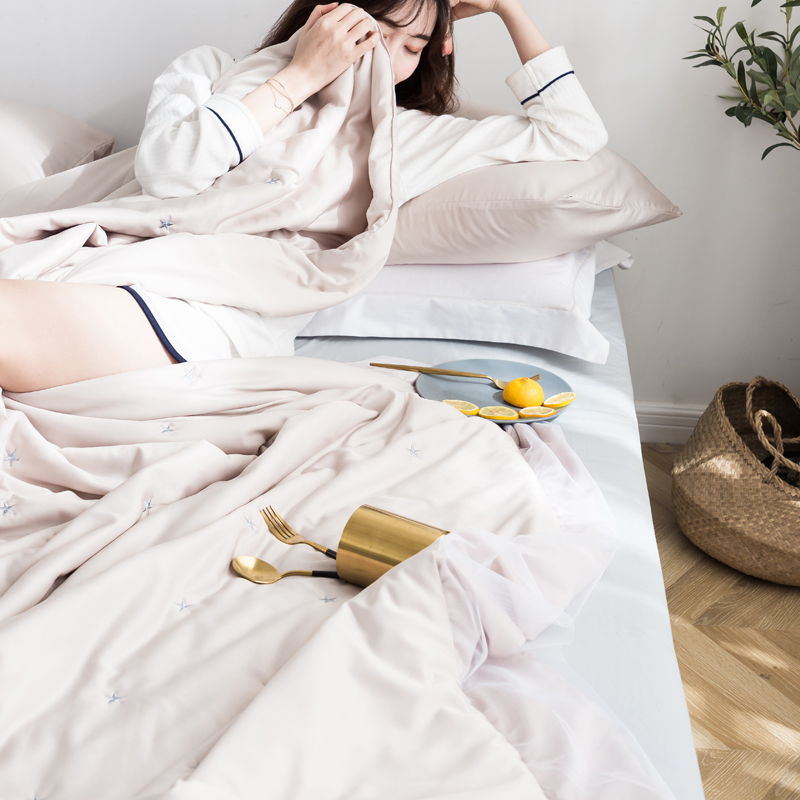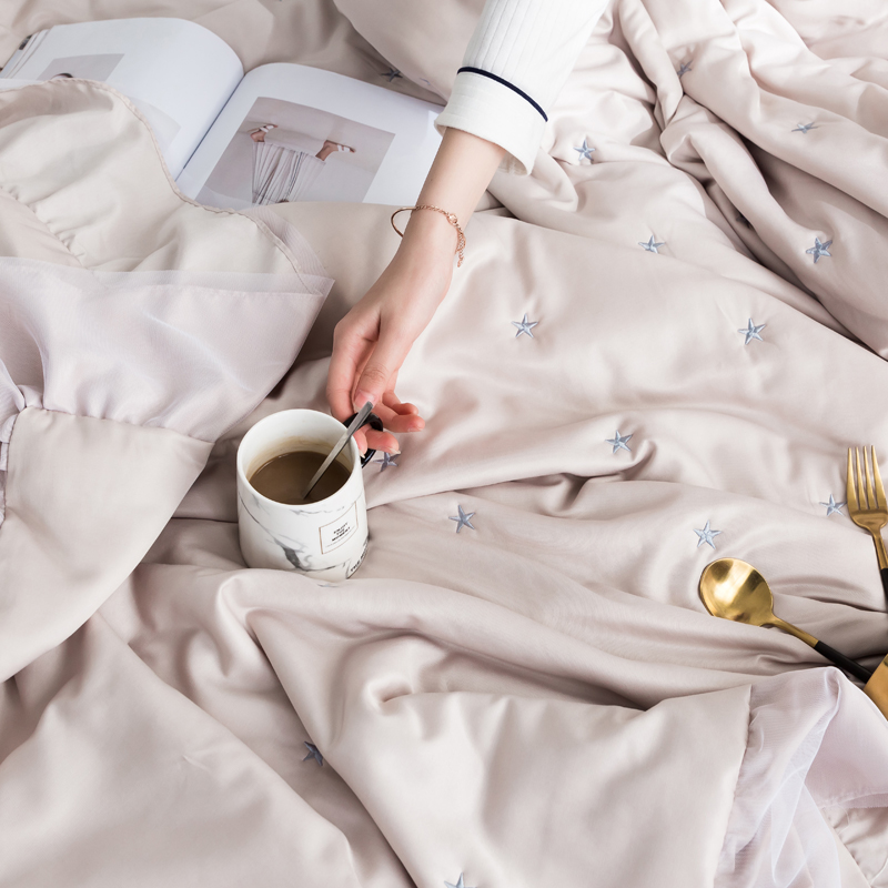 漫调 独家定制ins风满天星莫代尔天丝夏被刺绣夏被 奶咖