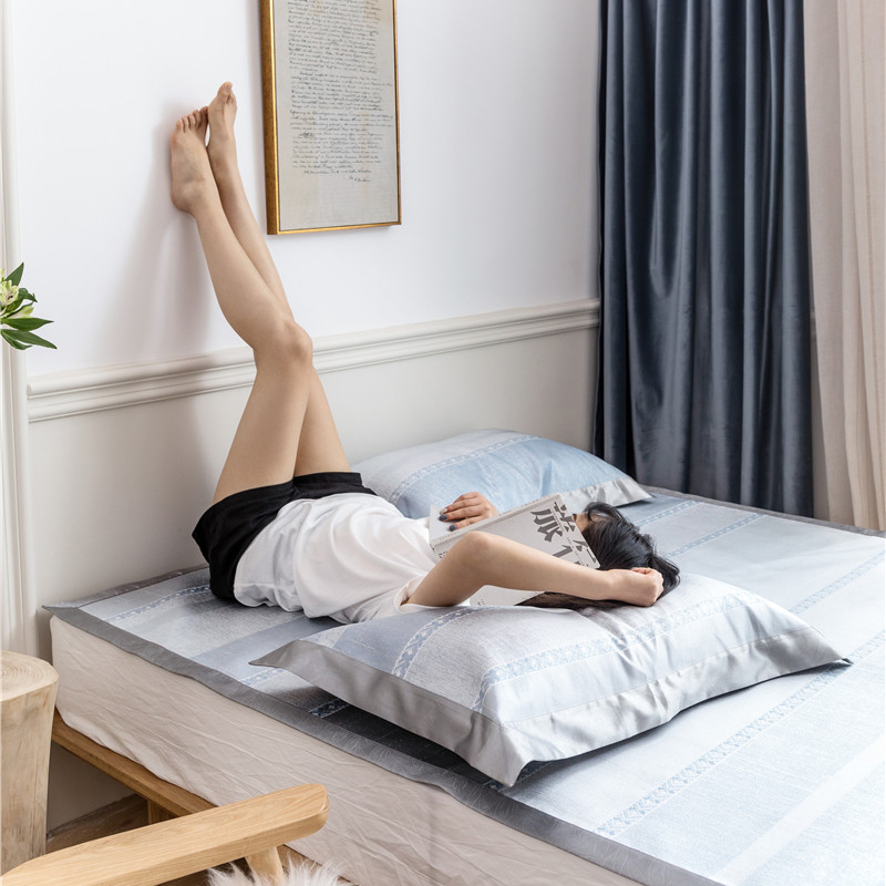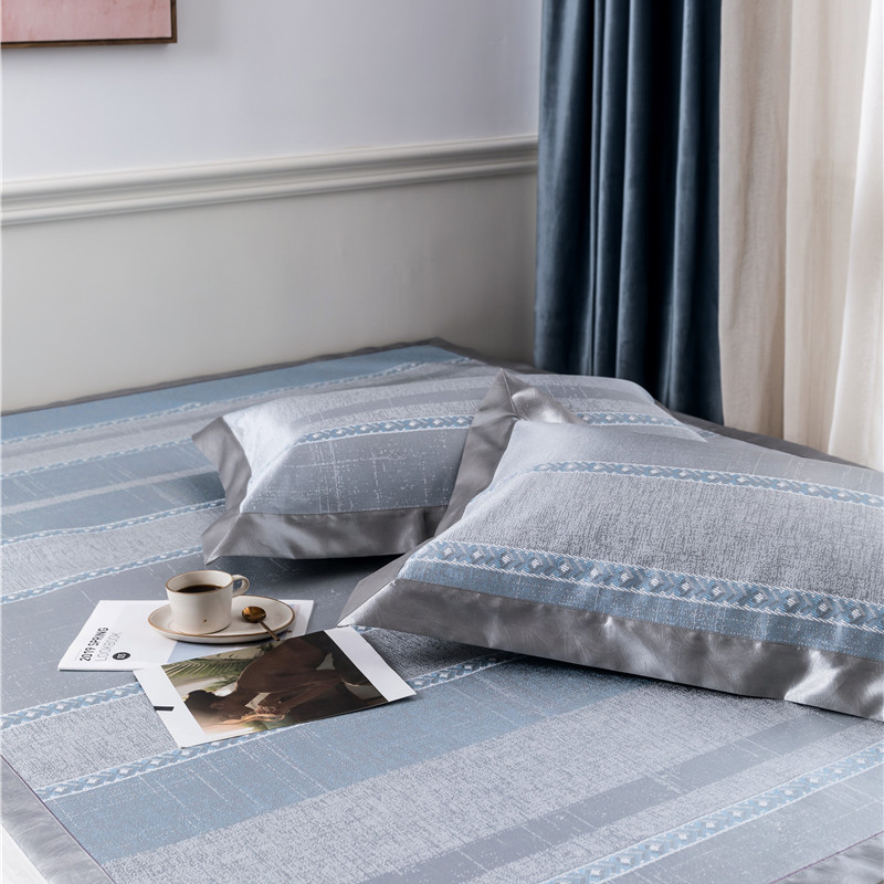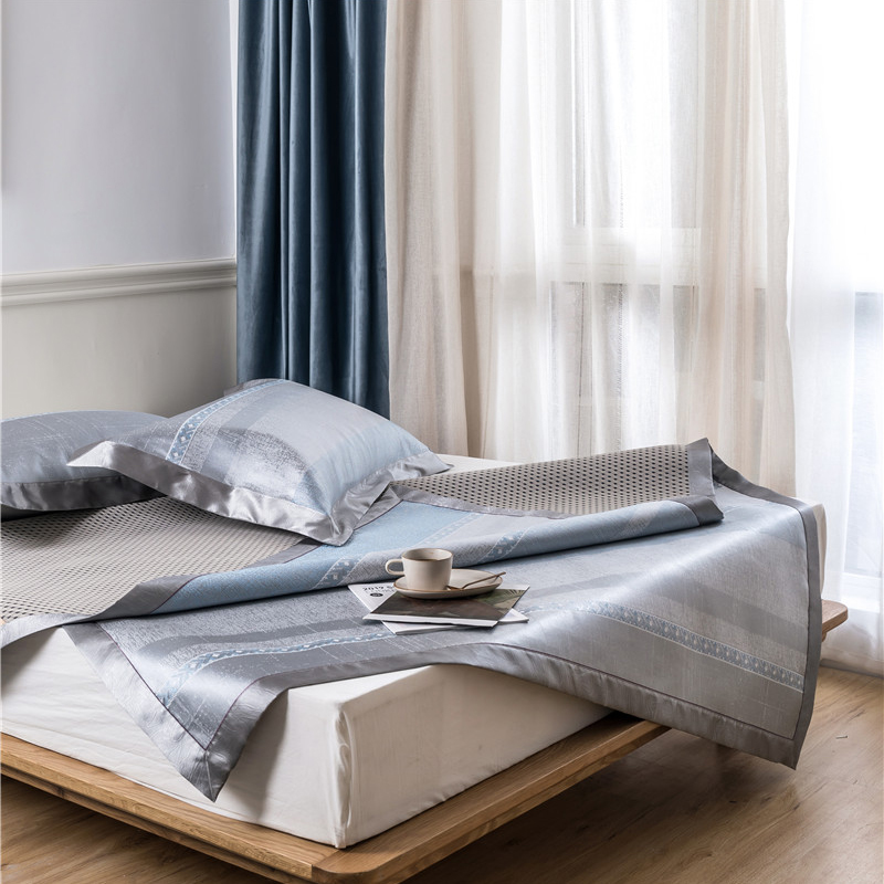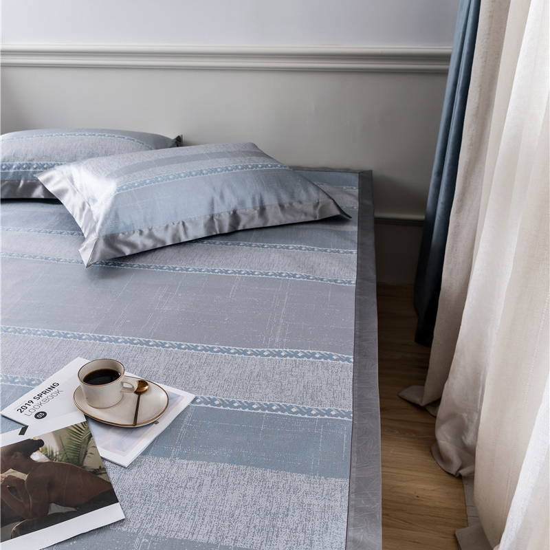 时年家纺 2019新款凉席冰丝席冰露丝提花款 马赛条纹-蓝