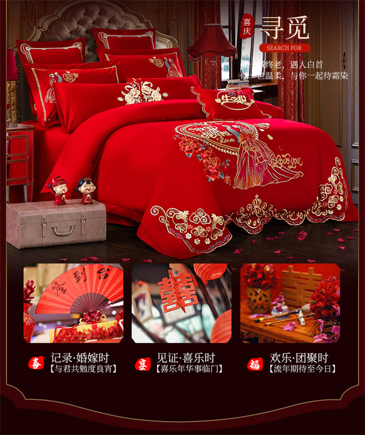 (总)千禧家纺 2024新款双面长绒棉磨毛加厚保暖绣花婚庆套件,大喜大吉,鸿运贺禧,欢乐喜事,欢喜,美满爱情,喜上眉梢,喜约,相伴一生,挚爱