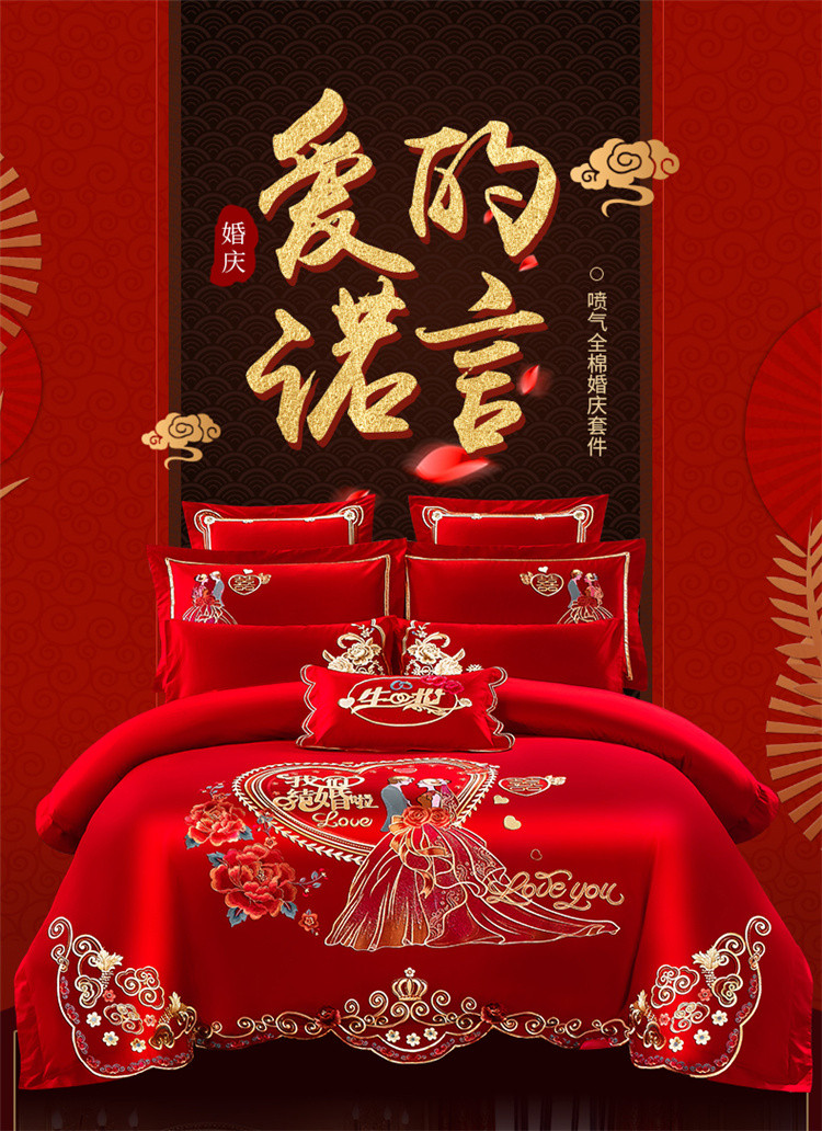 千禧婚庆专供 2019喷气全棉婚庆四件套多件套 爱的诺言