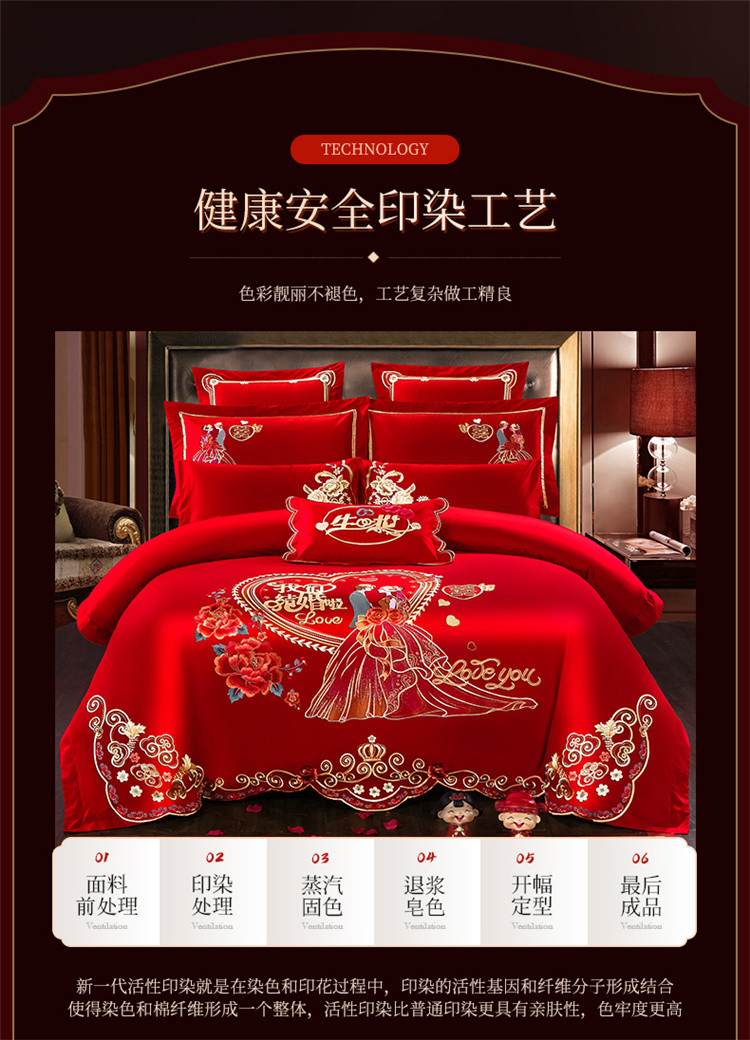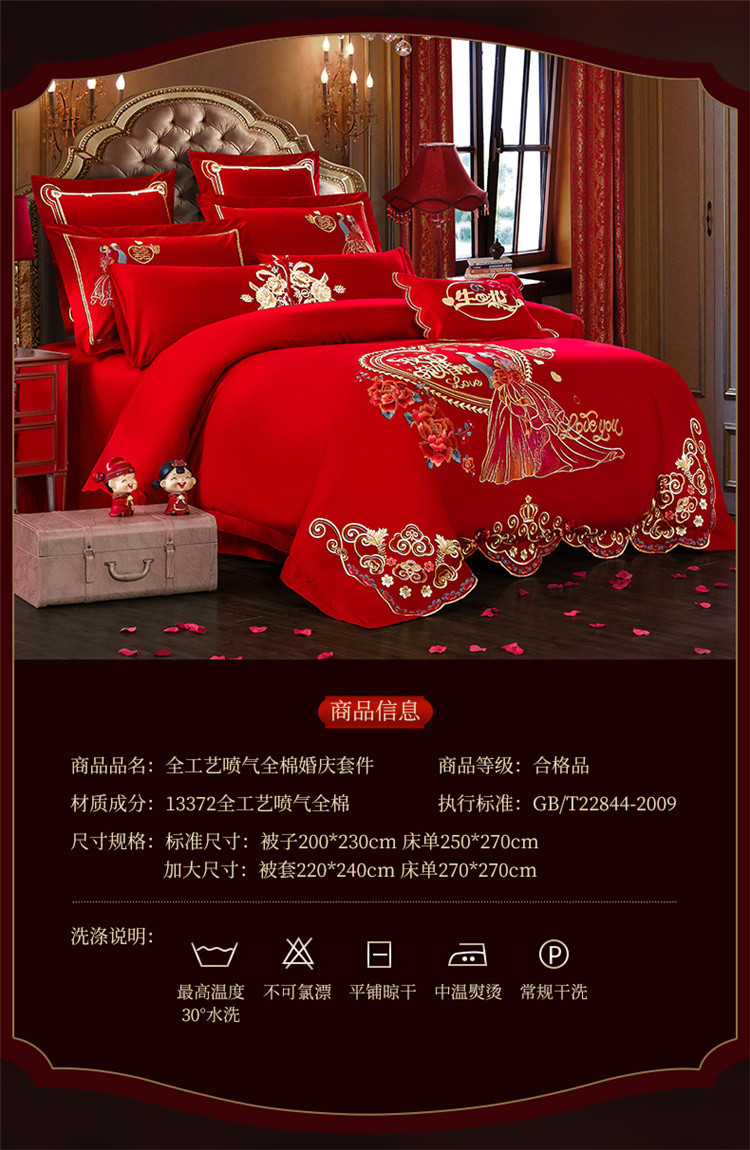 商品名称:千禧婚庆专供 2019喷气全棉婚庆四件套多件套 爱的诺言