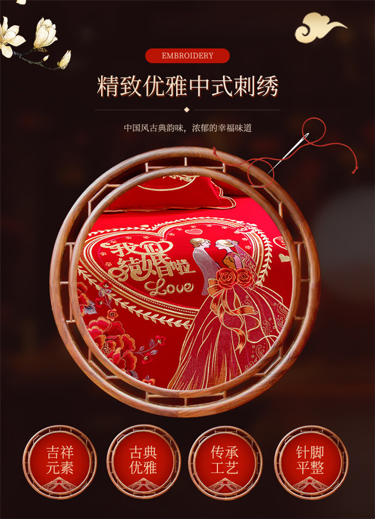 (总)千禧家纺 2025新款加厚高克重全消光牛奶绒刺绣婚庆四件套,百年好合(绒),龙凤喜事(绒),早生贵子(绒),缔结良缘,福禧生财,龙凤赐福,龙吟凤舞,喜嫁龙凤,喜临门