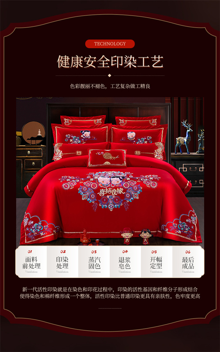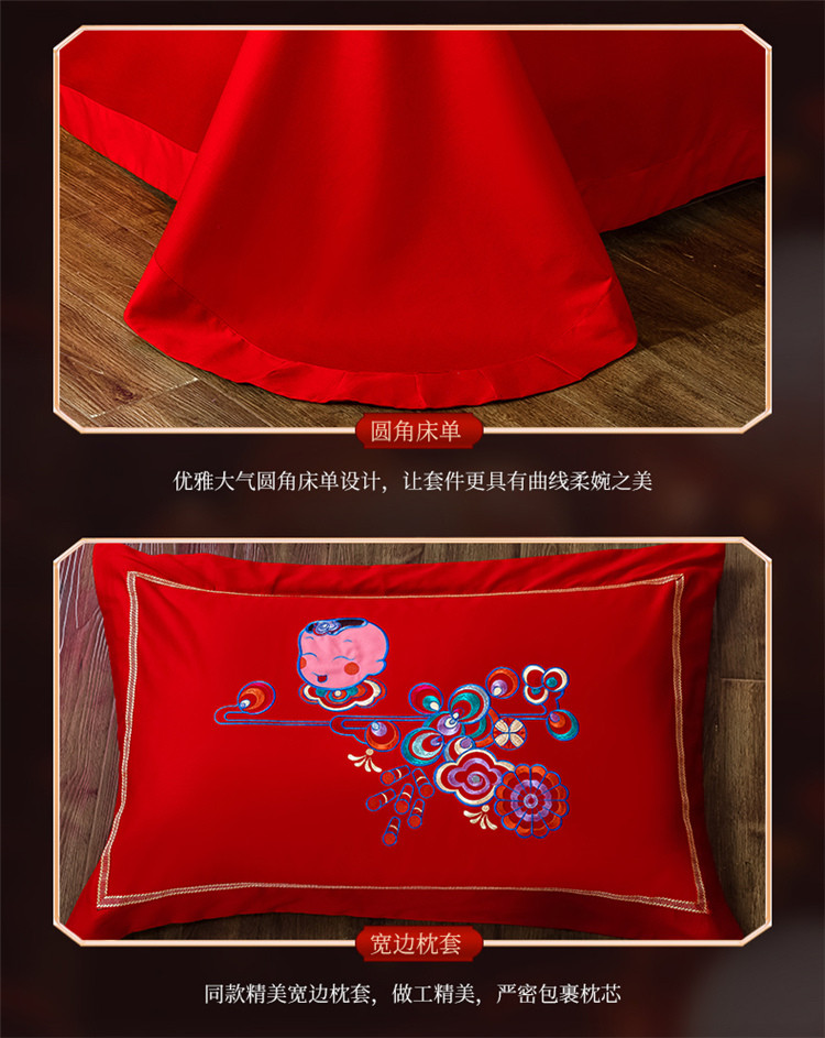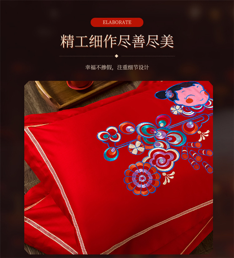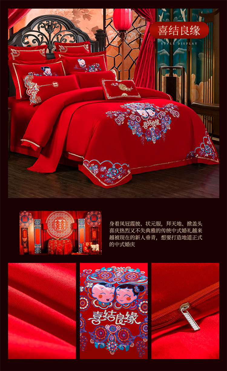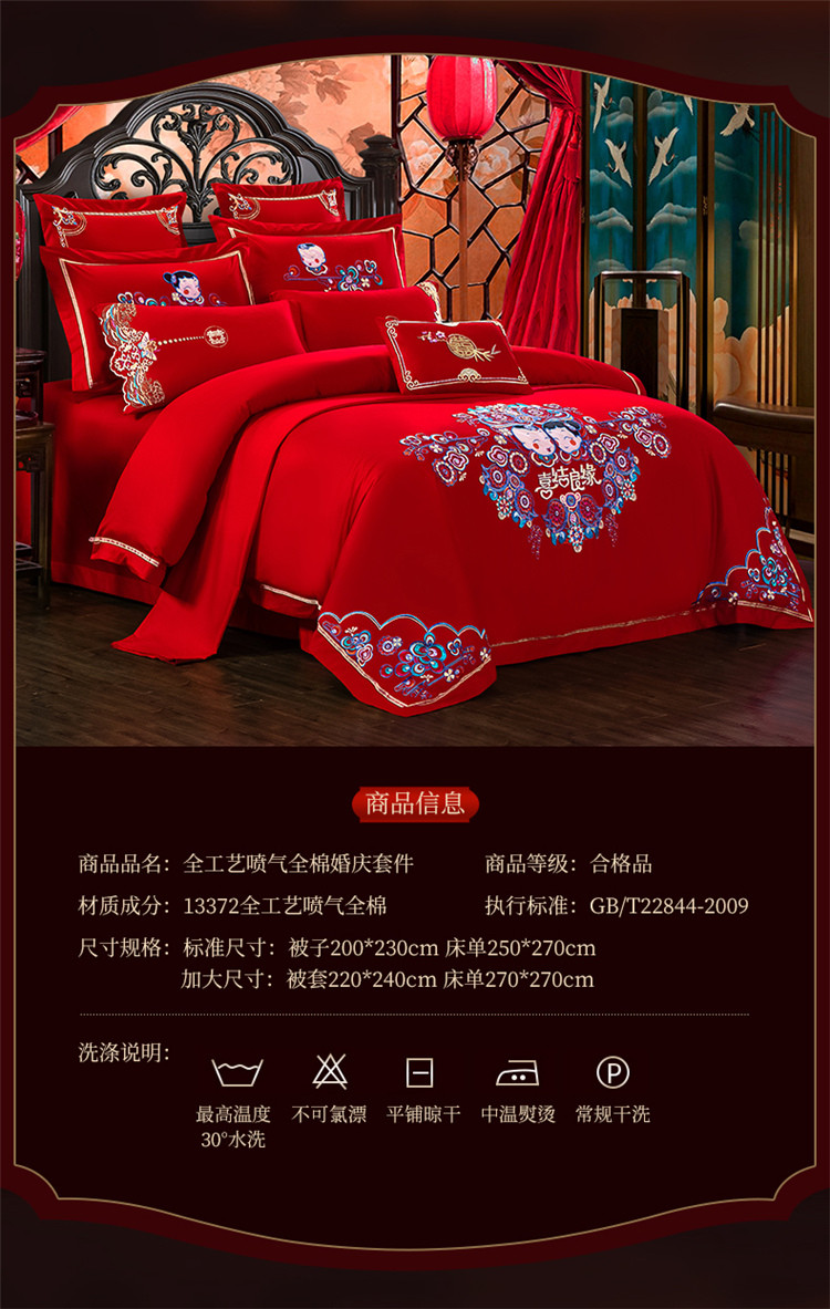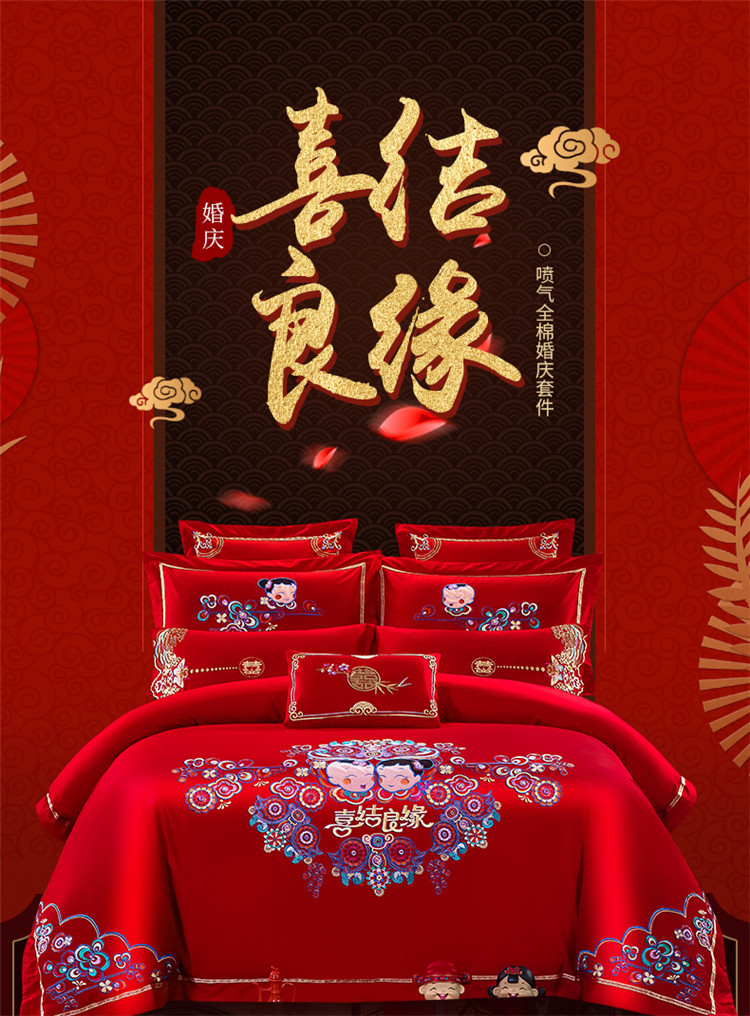 商品名称:千禧婚庆专供 2019喷气全棉婚庆四件套多件套 喜结良缘