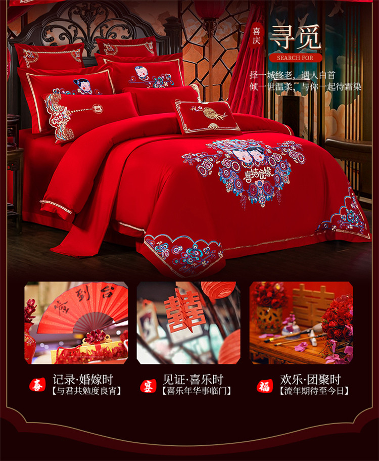 (总)千禧家纺 2024新款双面长绒棉磨毛加厚保暖绣花婚庆套件,大喜大吉,鸿运贺禧,欢乐喜事,欢喜,美满爱情,喜上眉梢,喜约,相伴一生,挚爱