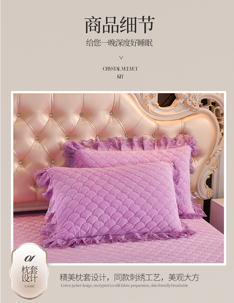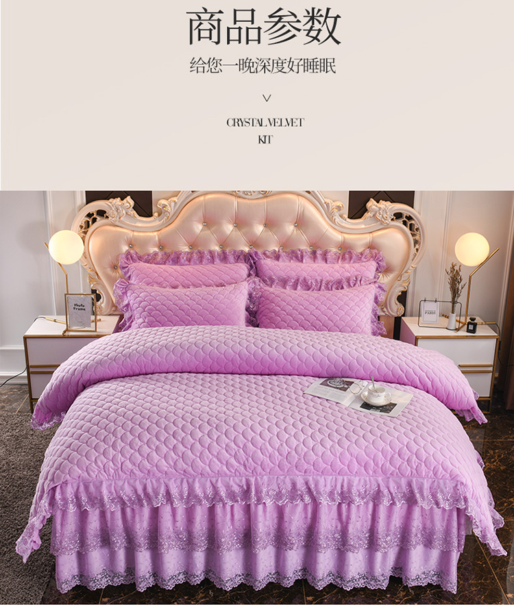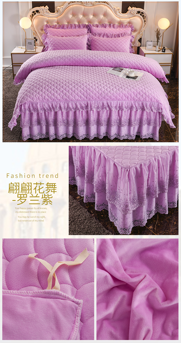 商品名称:恒爱家纺2021新款水晶绒夹棉蕾丝四件套 翩翩花舞-罗兰紫