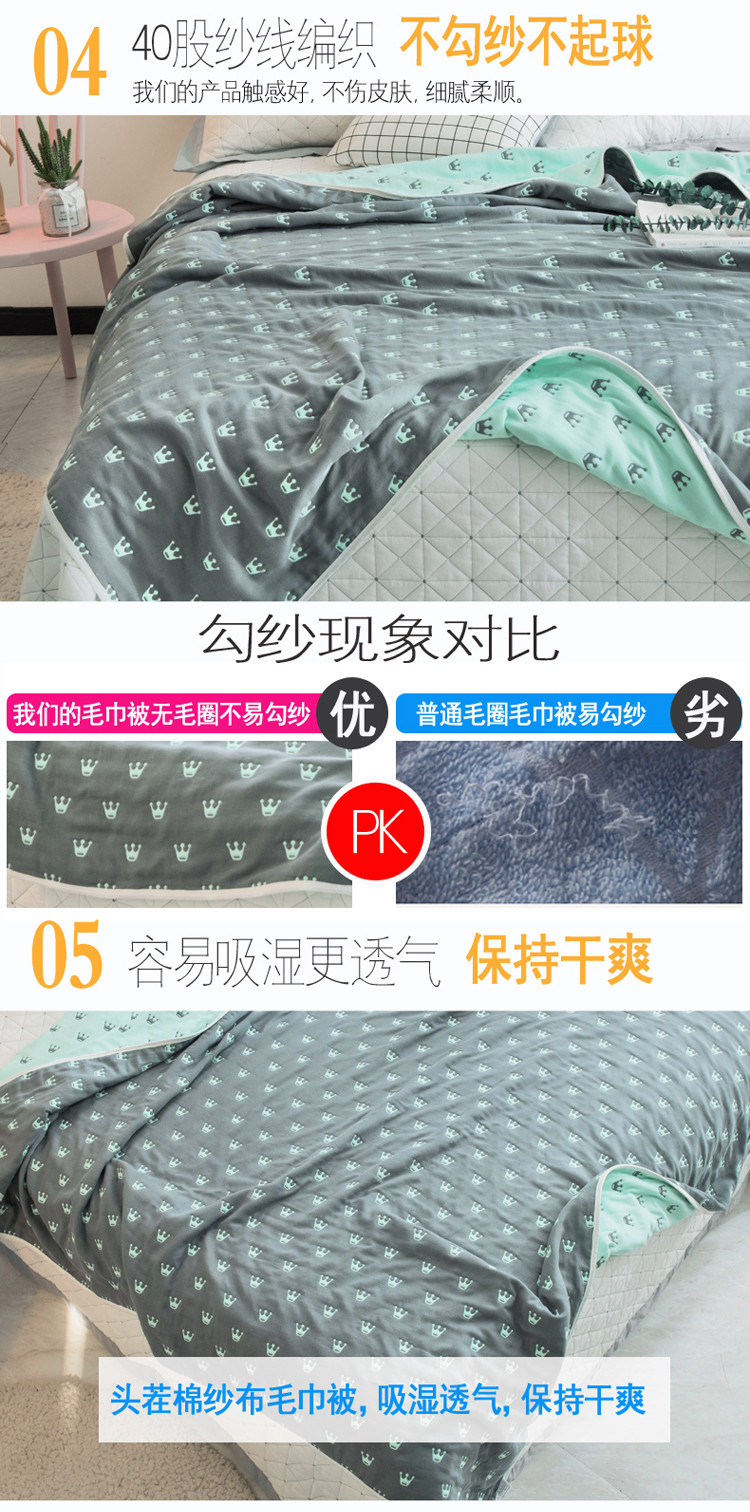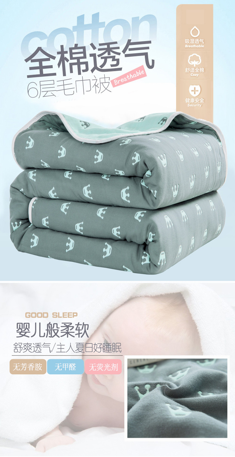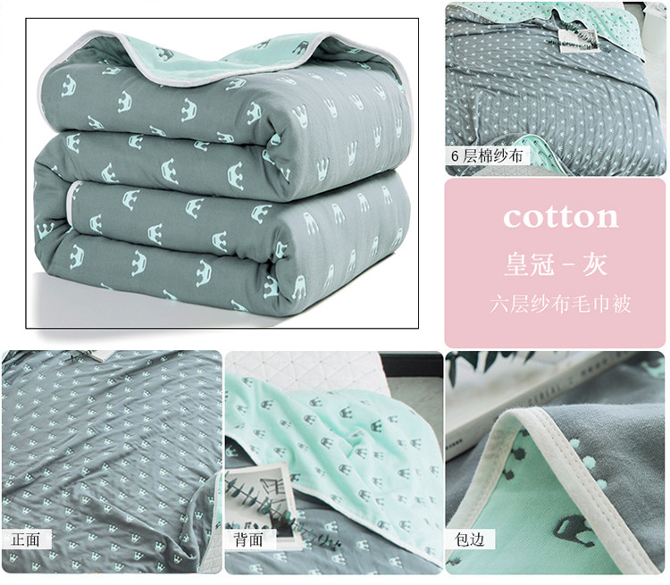 商品名称:朴尔家纺 六层全棉纱布毛巾被 皇冠-灰