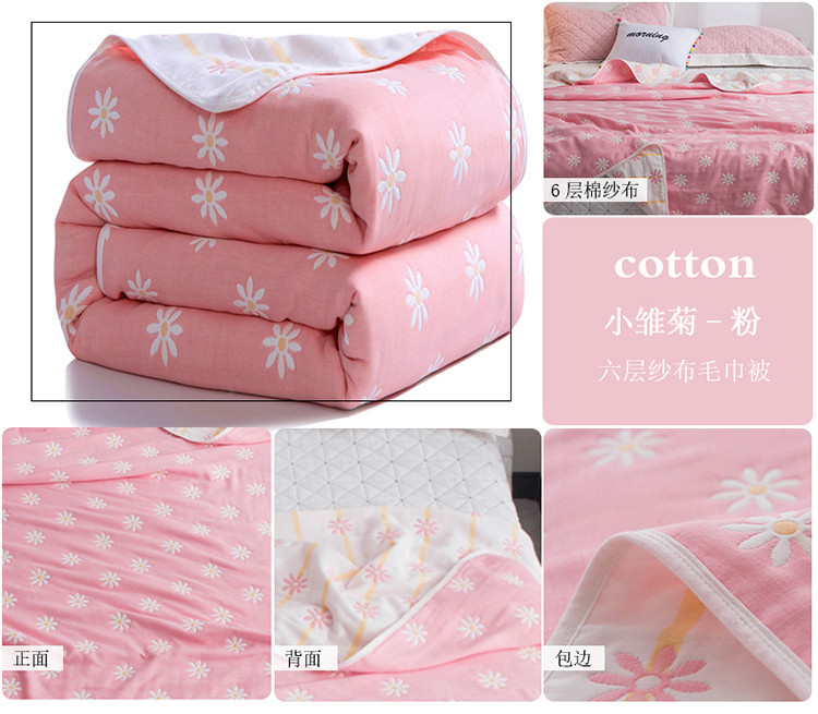 商品名称:朴尔家纺 六层全棉纱布毛巾被 小雏菊-粉