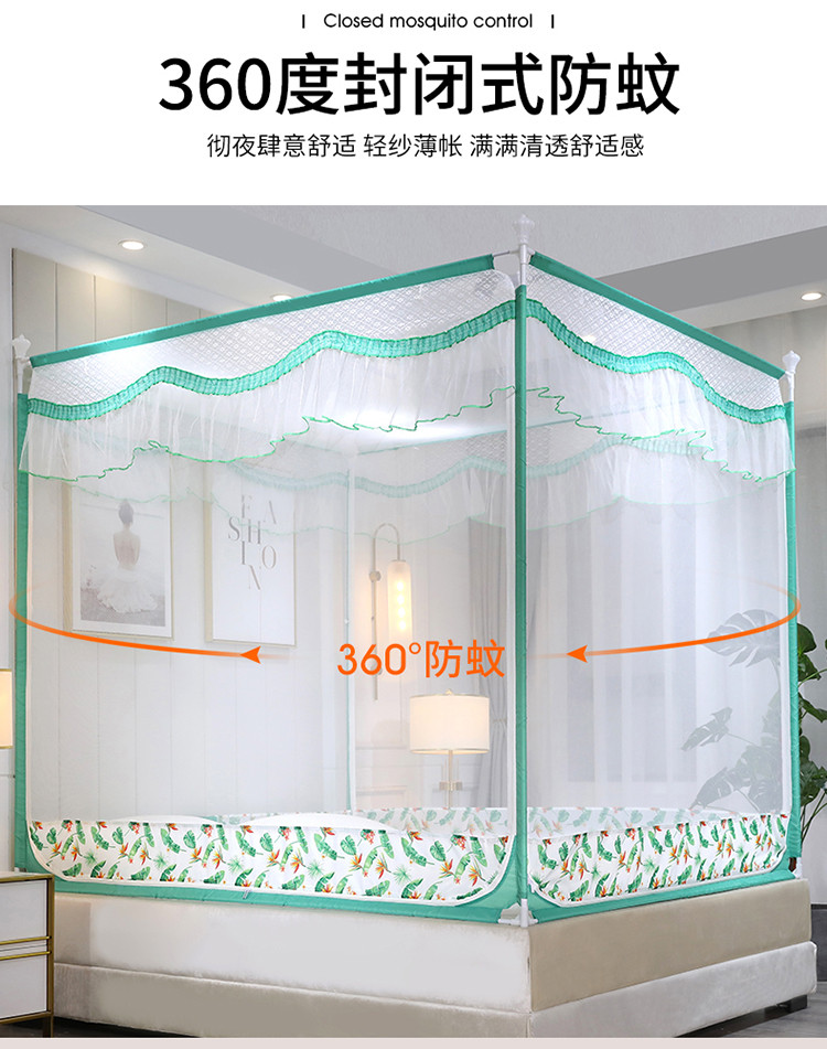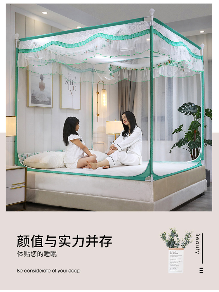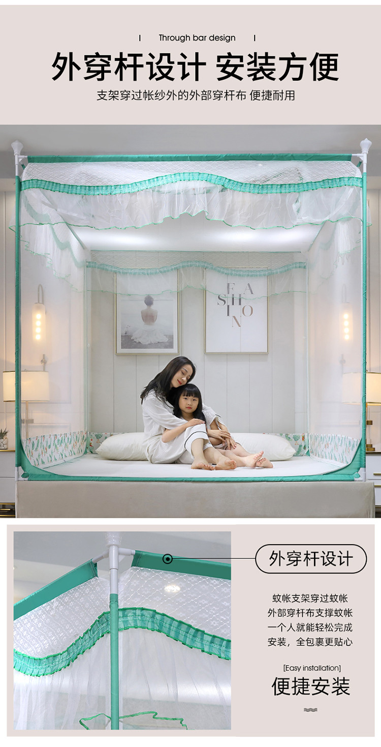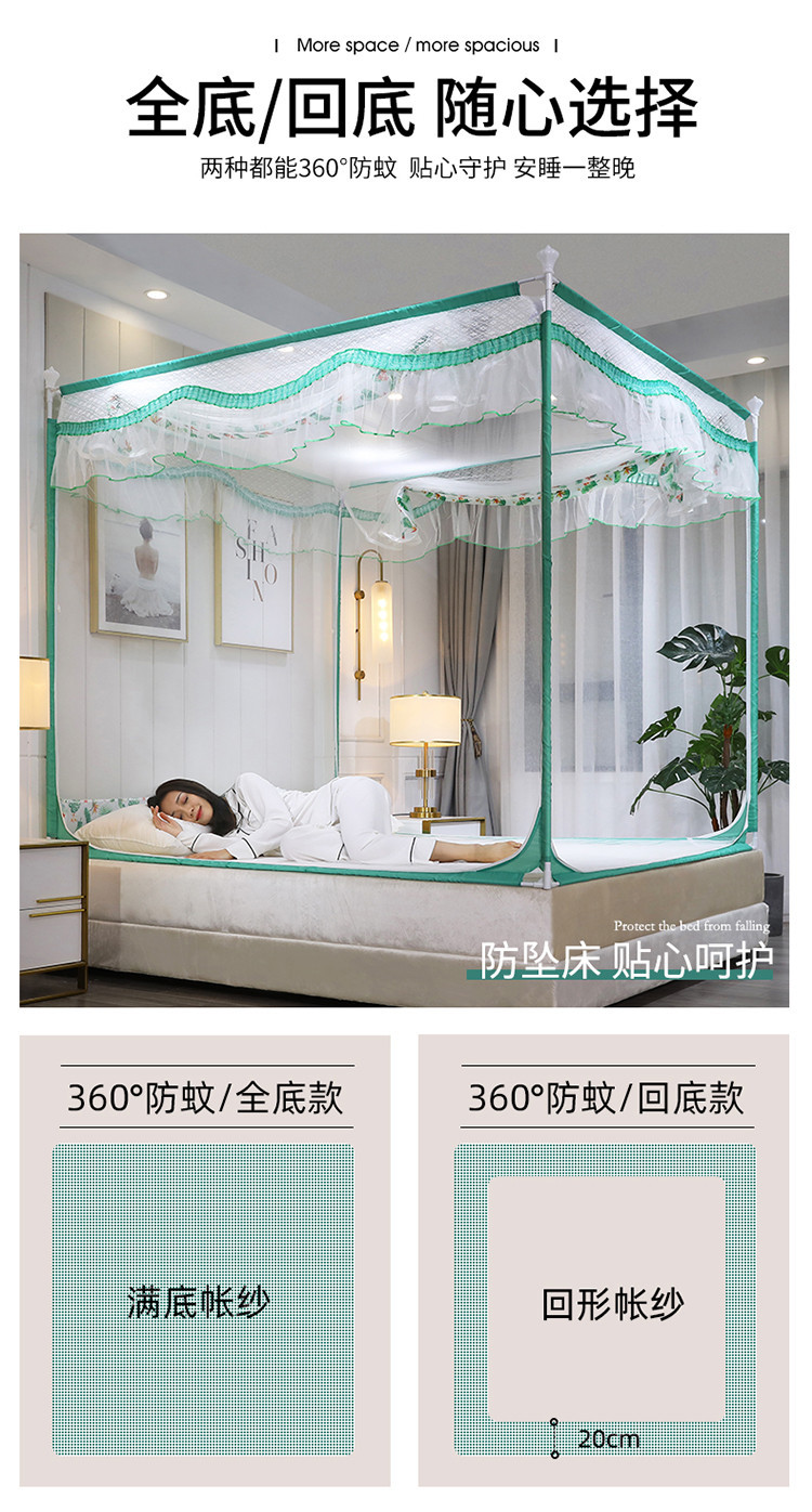 (总)伊而梦蚊帐 2025新款三开门刺绣花边T型A类母婴级加高坐床款蚊帐升级版围栏款防摔支架903款全底款床笠款,903 海岛蓝,903 月影灰,903 玫瑰粉,903 奶油黄,903 优雅绿
