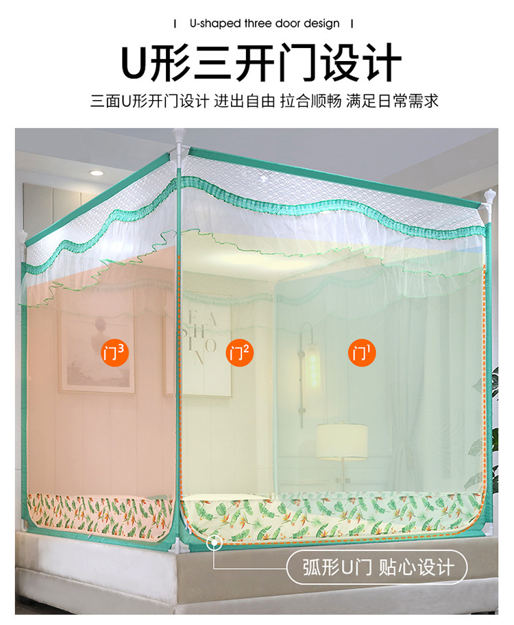 (总)伊而梦蚊帐 2025新款三开门刺绣花边U型A类母婴级加高坐床蚊帐升级版围栏款防摔支架908款,908 碧水蓝,908 冷月灰,908 嫩芽绿,908 秋桂黄,908 霞光粉,908 珍珠白