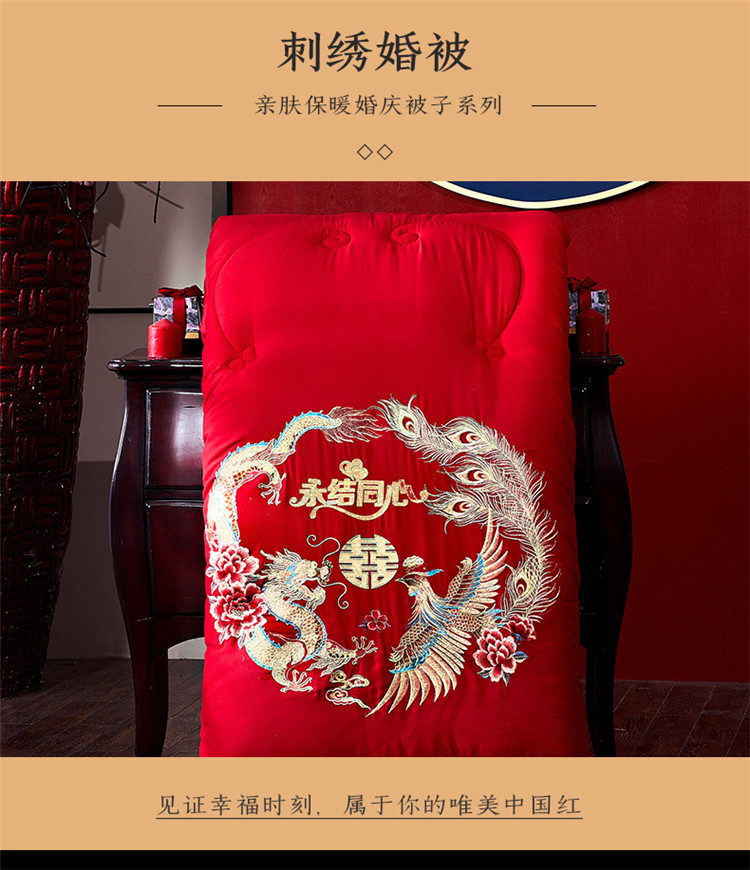 商品名称:玉雅 婚庆磨毛绣花大豆春秋被冬被喜被被芯含包装袋 永结同心
