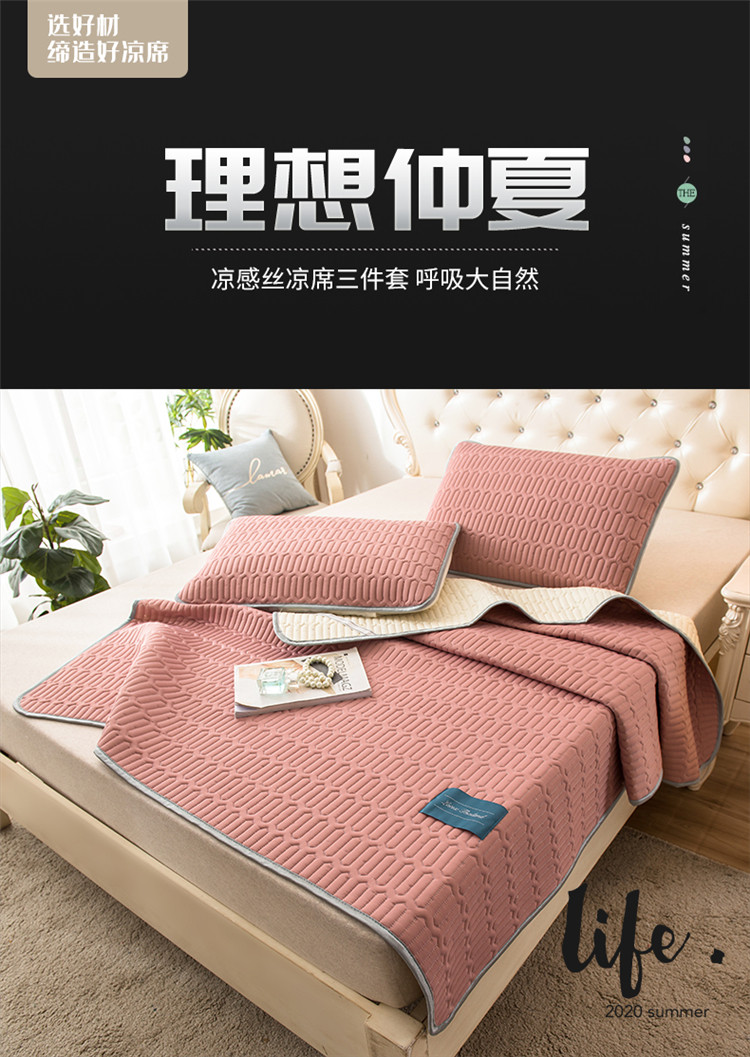 威克凯丽2023新款重磅七彩大提花纯竹纤维软凉席三件套 雅然,雅然