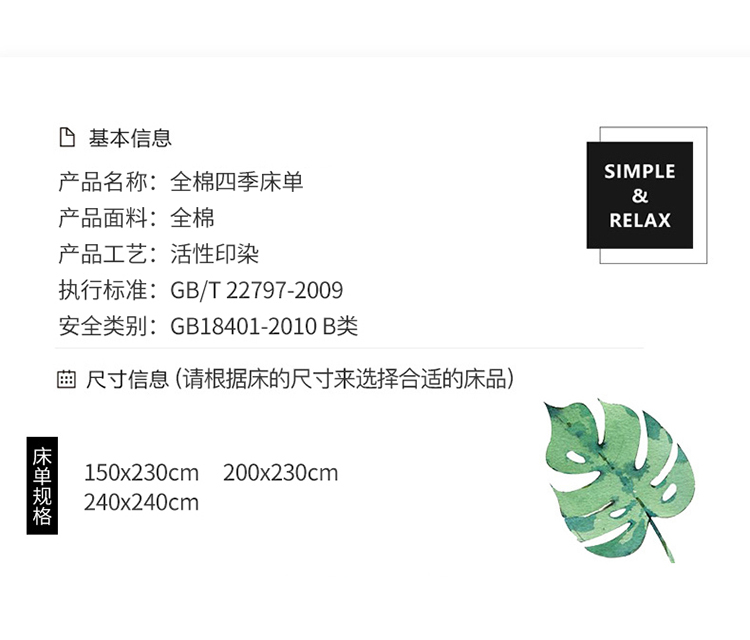 商品名称:(总)润淳 2025新款全棉四季单床单