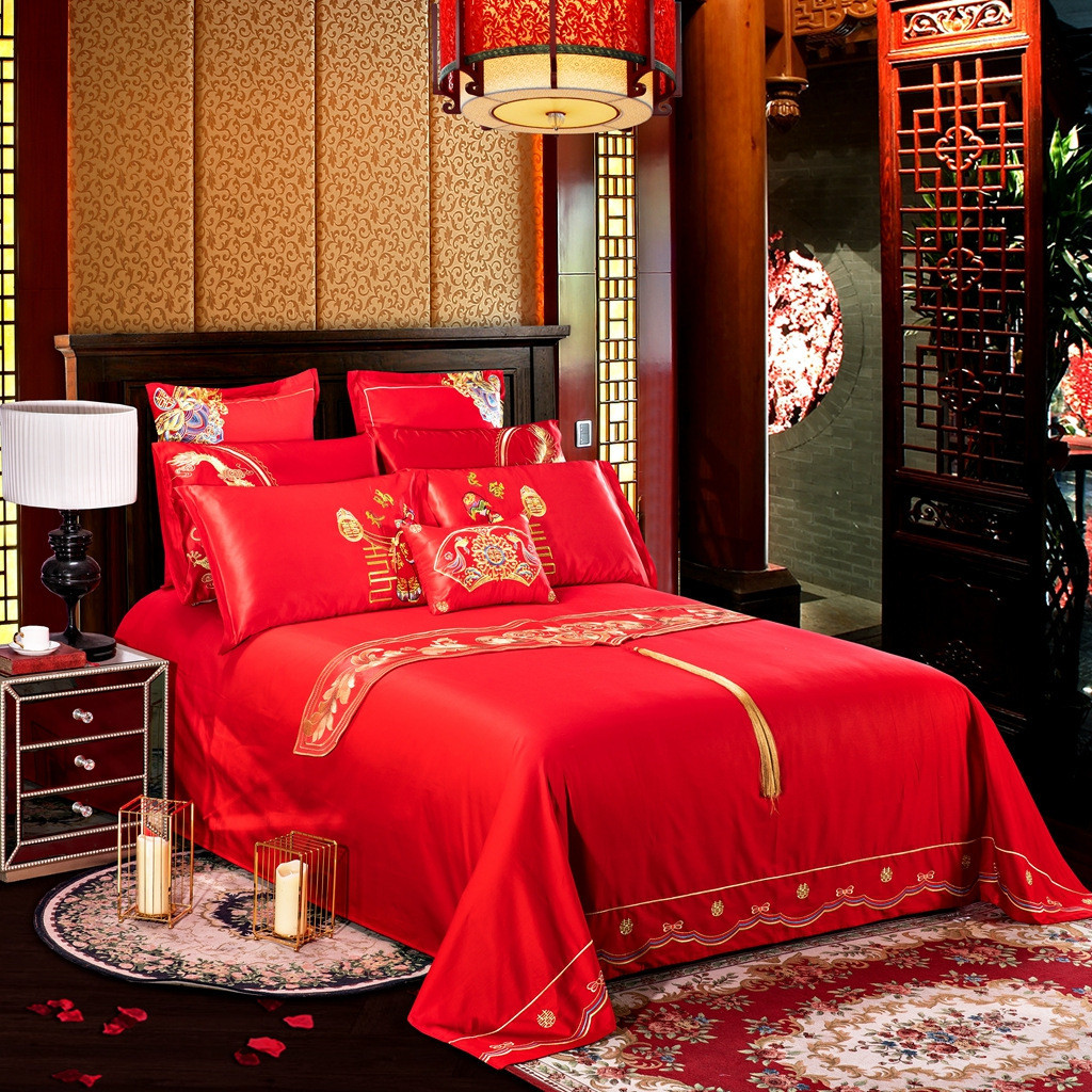 (总)玉雅家纺 2025新款水洗冰丝刺绣床裙款婚庆四件套,床裙款-爱意浓,床裙款-大喜日子,床裙款-欢欢喜喜,床裙款-龙凤缘,床裙款-我们结婚啦,床裙款-喜临门,床裙款-心相印,床裙款-新婚快乐