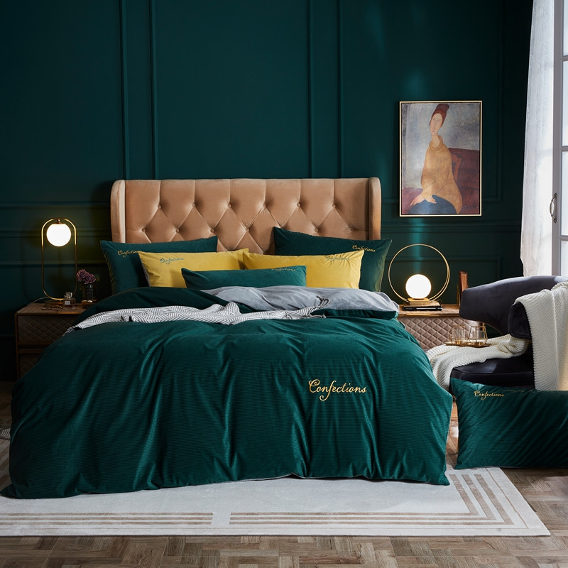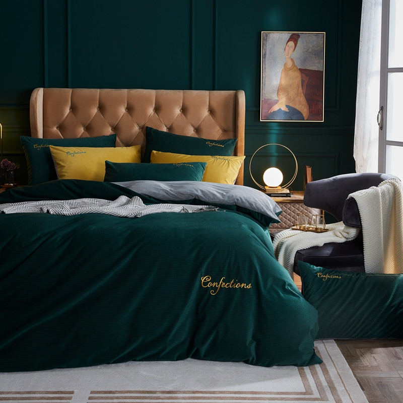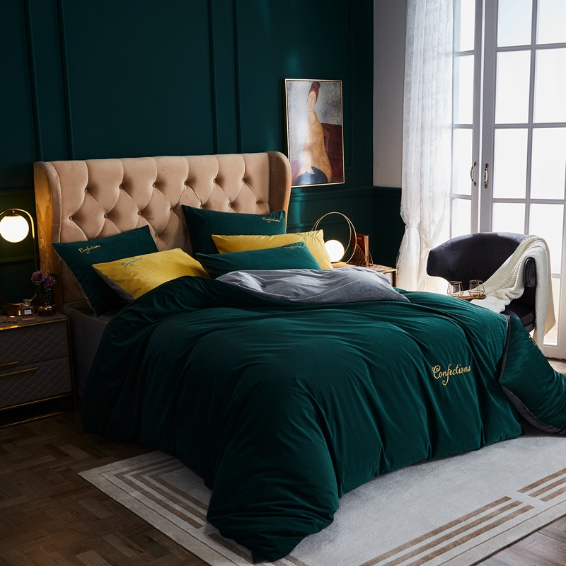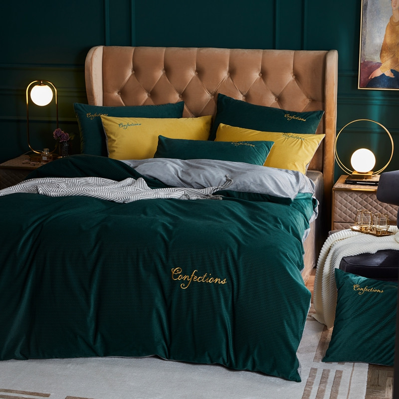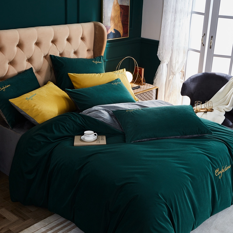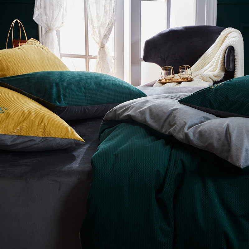 玖玖爱 2020新款加厚铂金提花绒四件套 绿