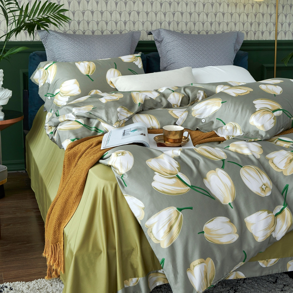 (总)优然居家纺 2025新款50支全棉纯棉印花法式双头木耳边四件套,觅棠,莫妮卡艾绿,莫妮卡罗兰,慕斯粉,薇薇安