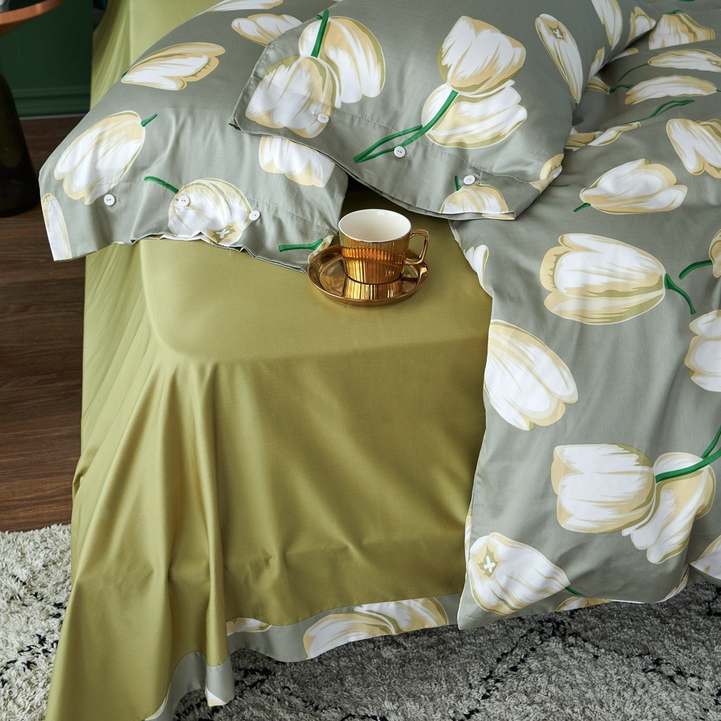 (总)优然居家纺 2026新款100支全工艺提花法式浪漫珍珠扣四件套-米兰系列,米兰法式绿,米兰奶白