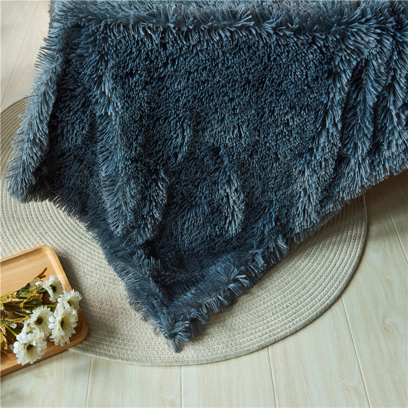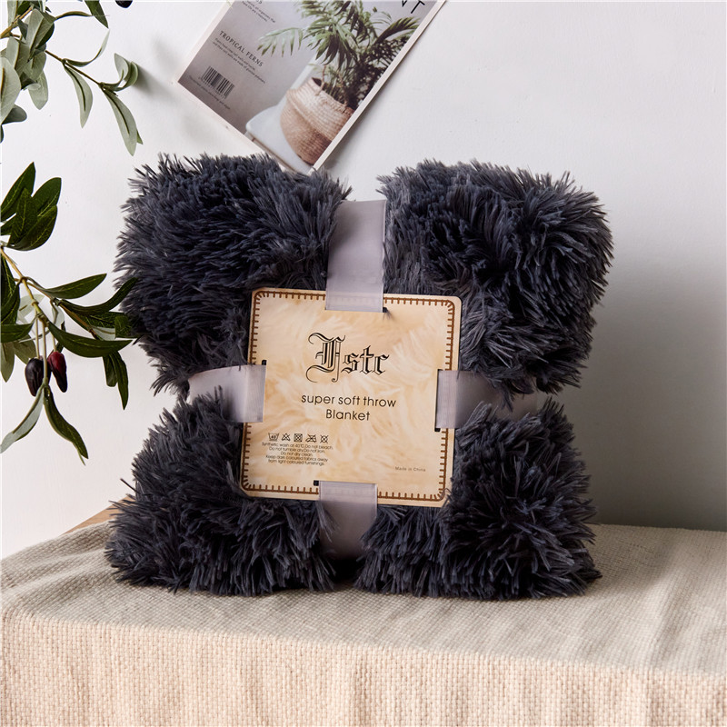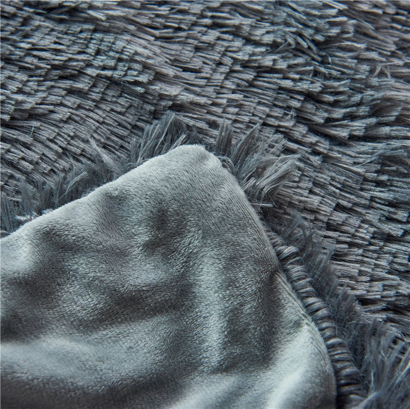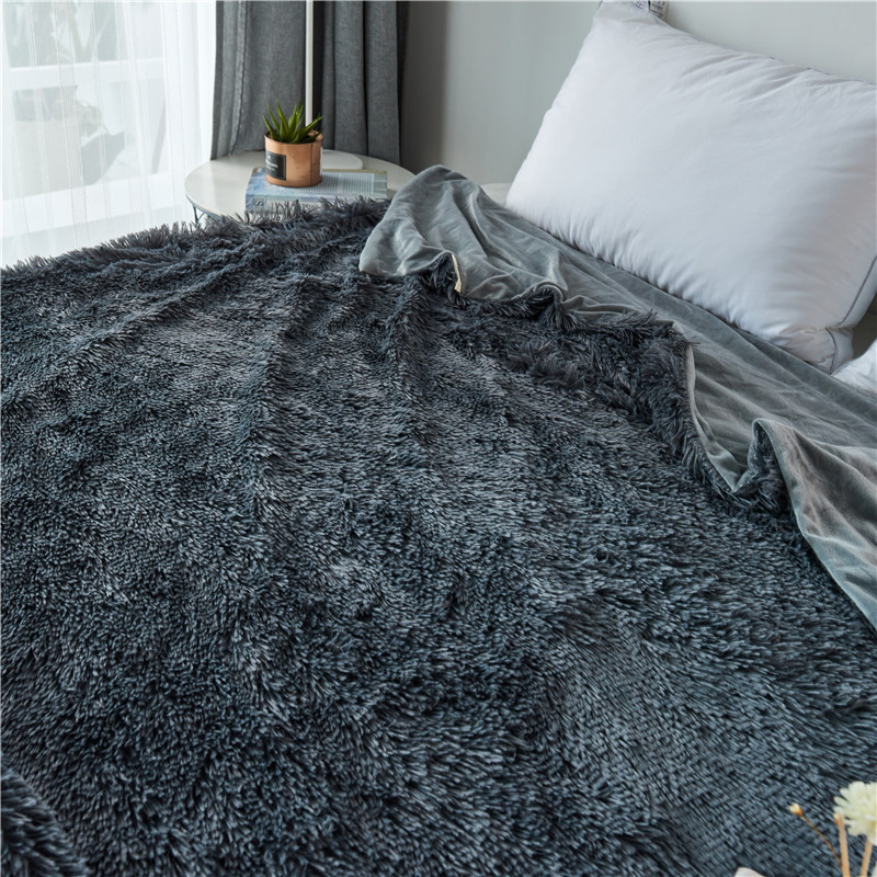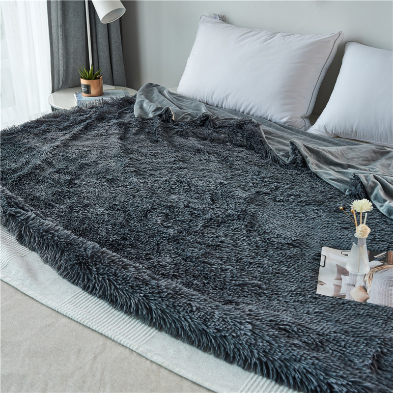 品尚嘉 2025水貂绒毛毯长毛绒法莱绒双层跨境外贸毯子 深灰