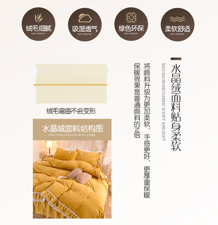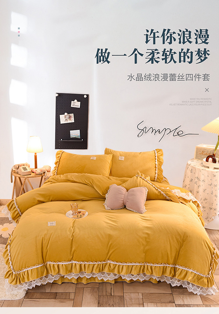 商品名称:艾米家居 2020新款缇娜水晶绒四件套 黄