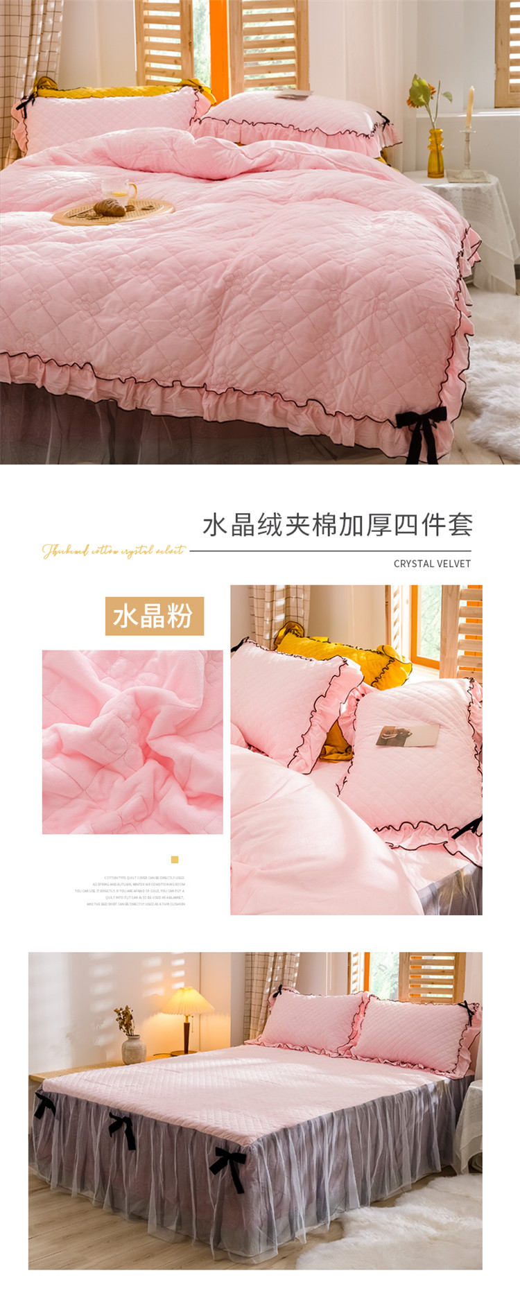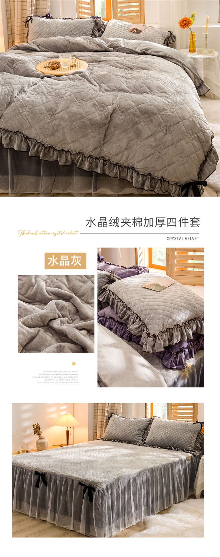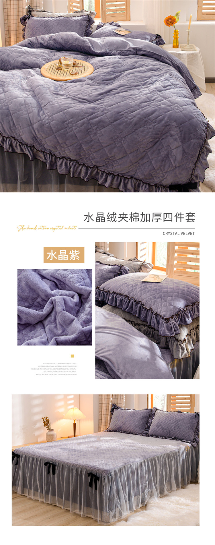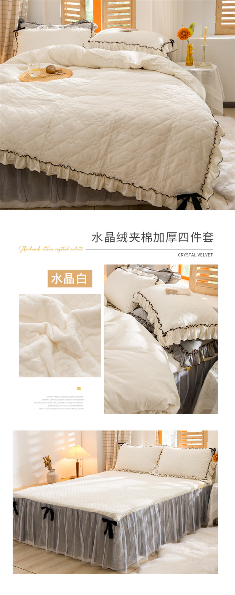 (总)嗨购 2020新款夹棉水晶绒韩版花边四件套