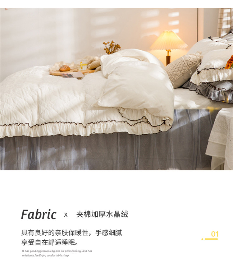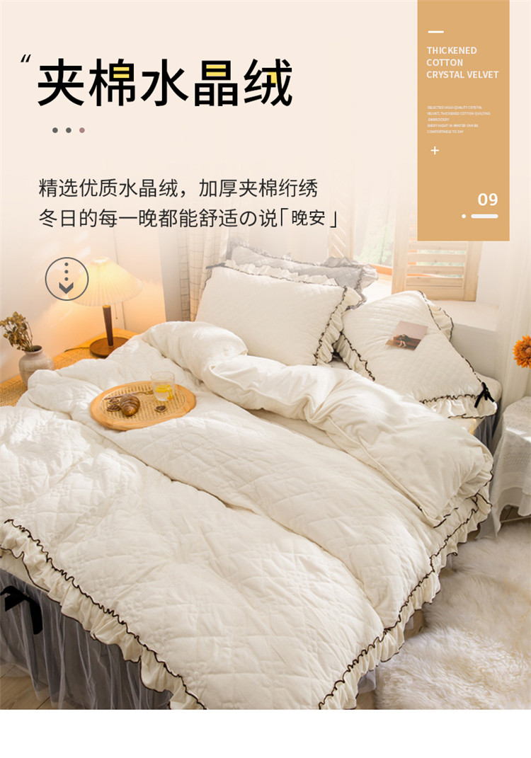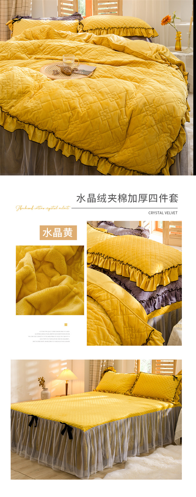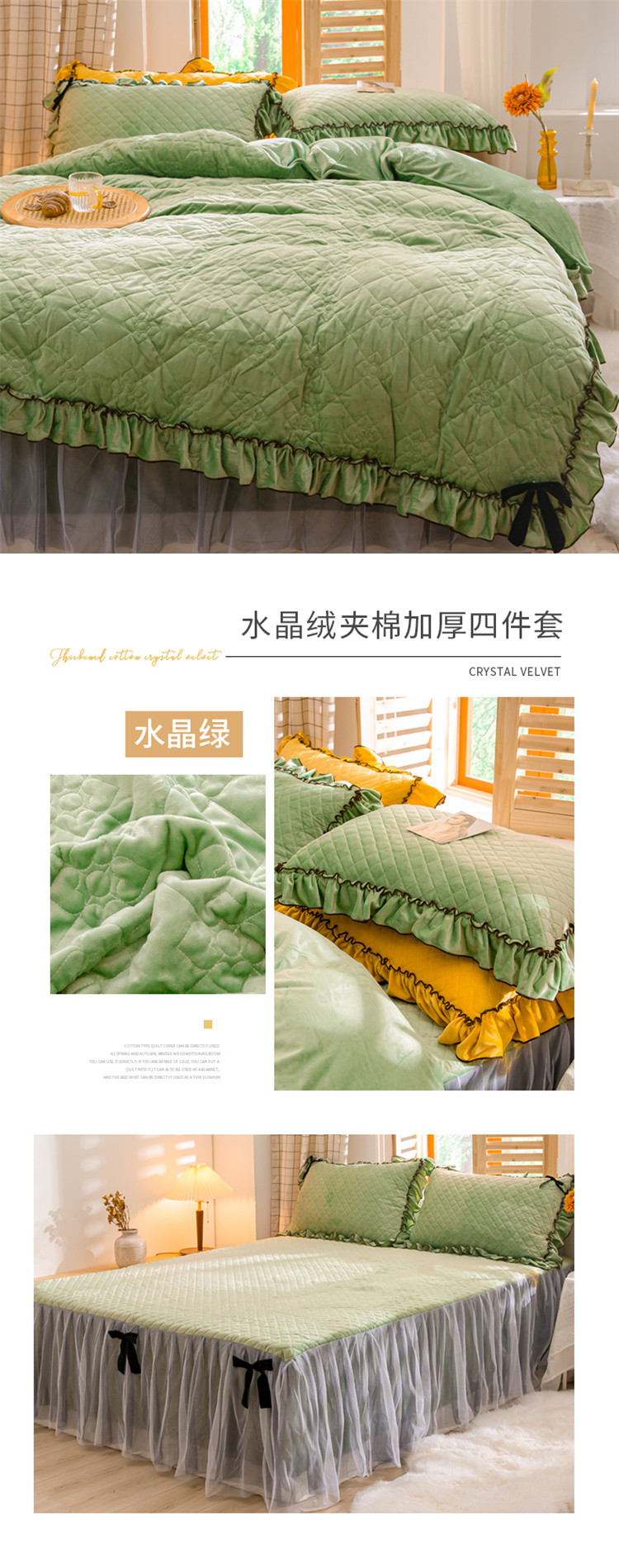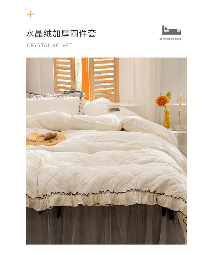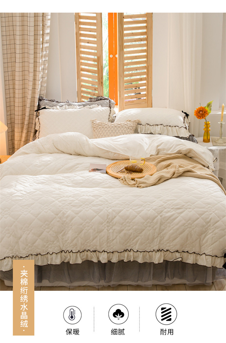 (总)嗨购 2020新款夹棉水晶绒韩版花边四件套